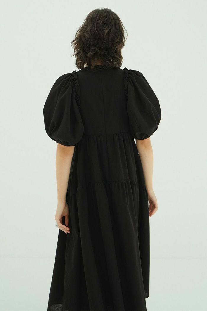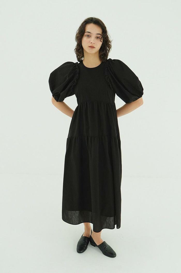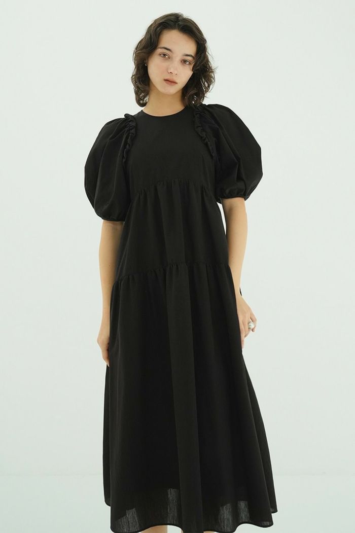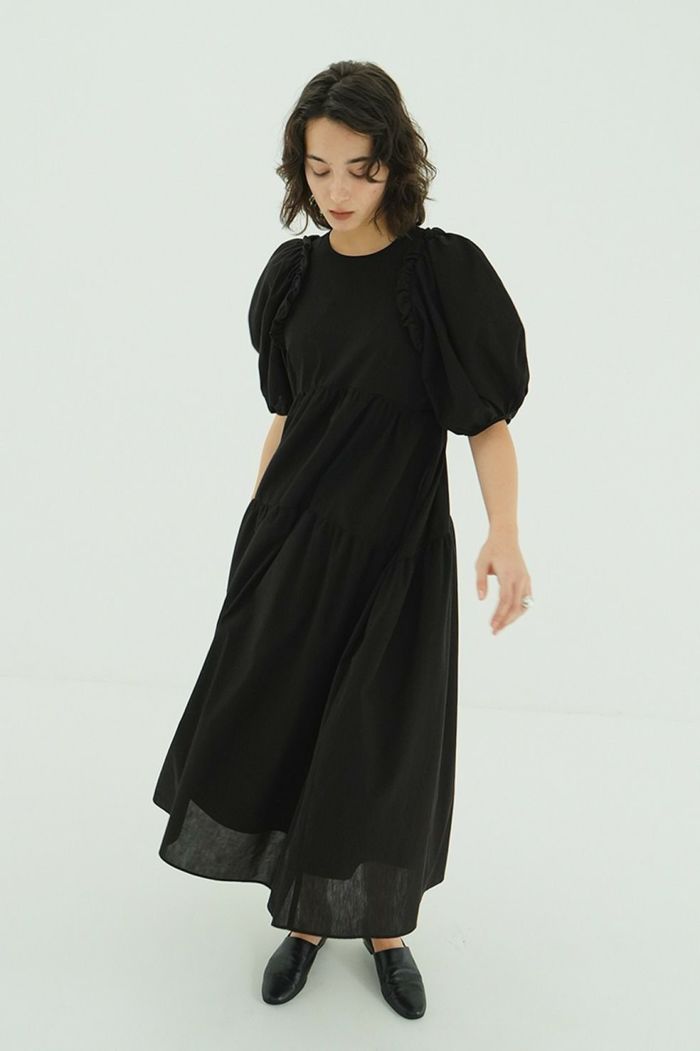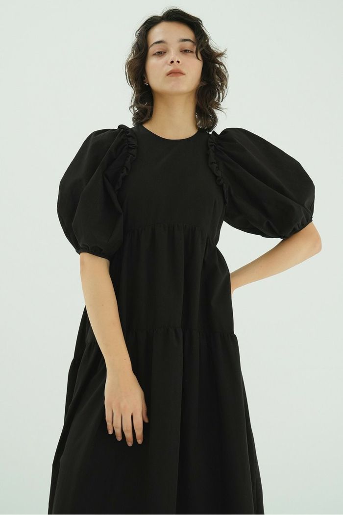 リトルバルーンフリルとフォルムが映えるワンピース。