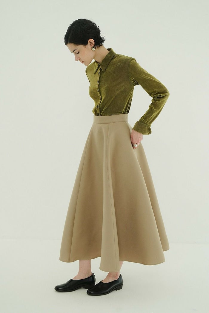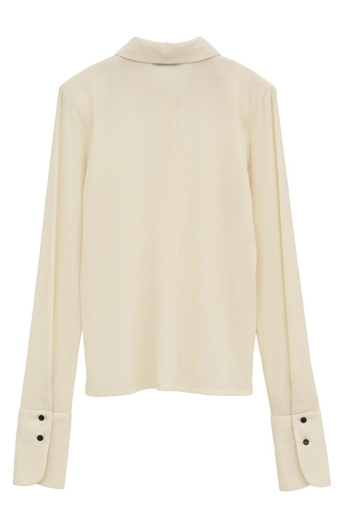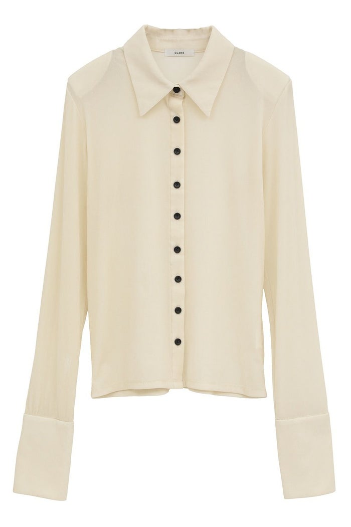取り外し可能な肩パッドとカフスデザインを施し、CLANEらしいモードさをプラスしました。ボタンを全て留めてモードに、少し開けて女性らしく着こなすのもおすすめです。