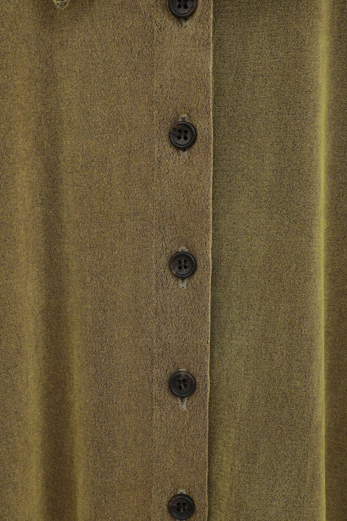 インでもアウトでも着やすい丈感で、コーディネートの幅を広げてくれる万能な一枚。繊細なチュールにフロッキー加工を施すことで、心地よい着用感と奥行きのある表情を実現。さりげない微配色のボタンもポイントです。