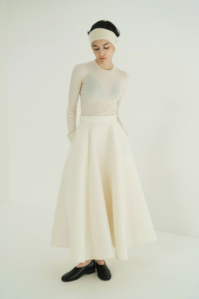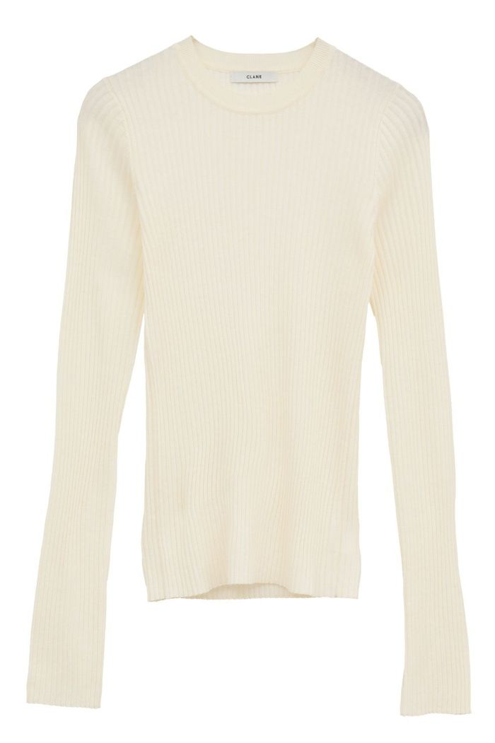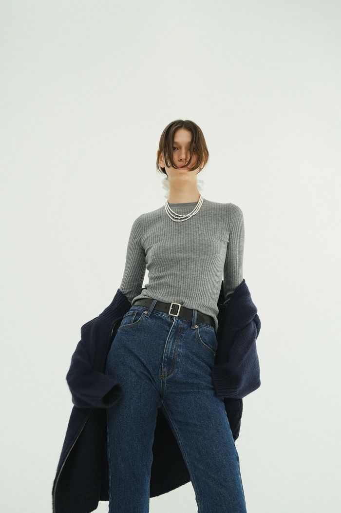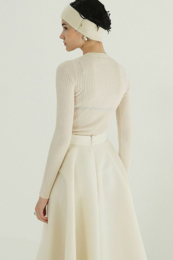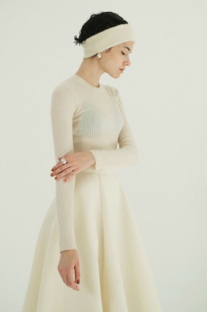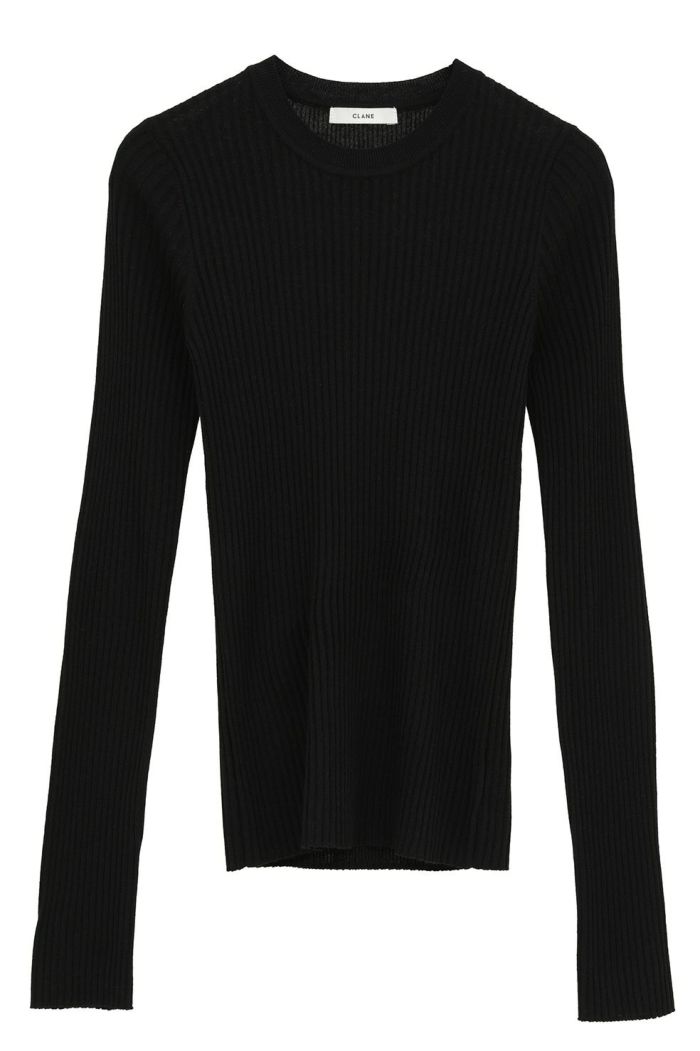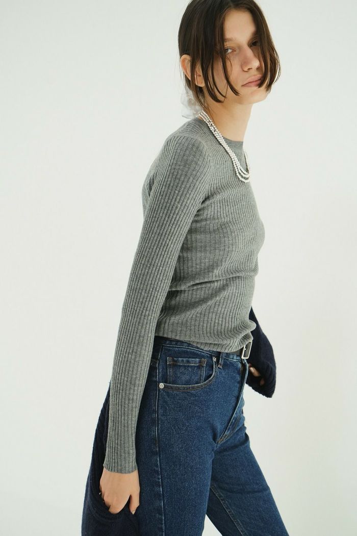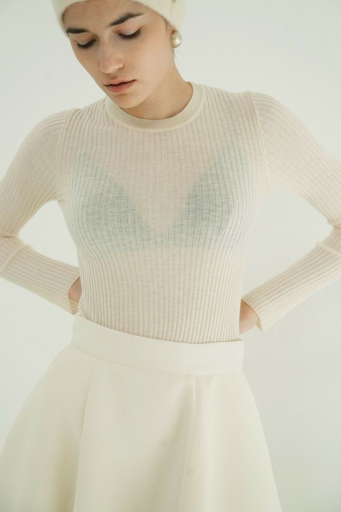 細い番手の糸を16ゲージで丁寧に編み立てた、繊細なシアーリブニット。
