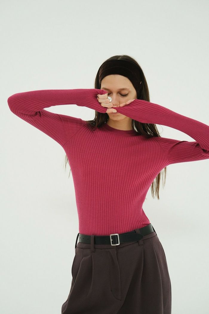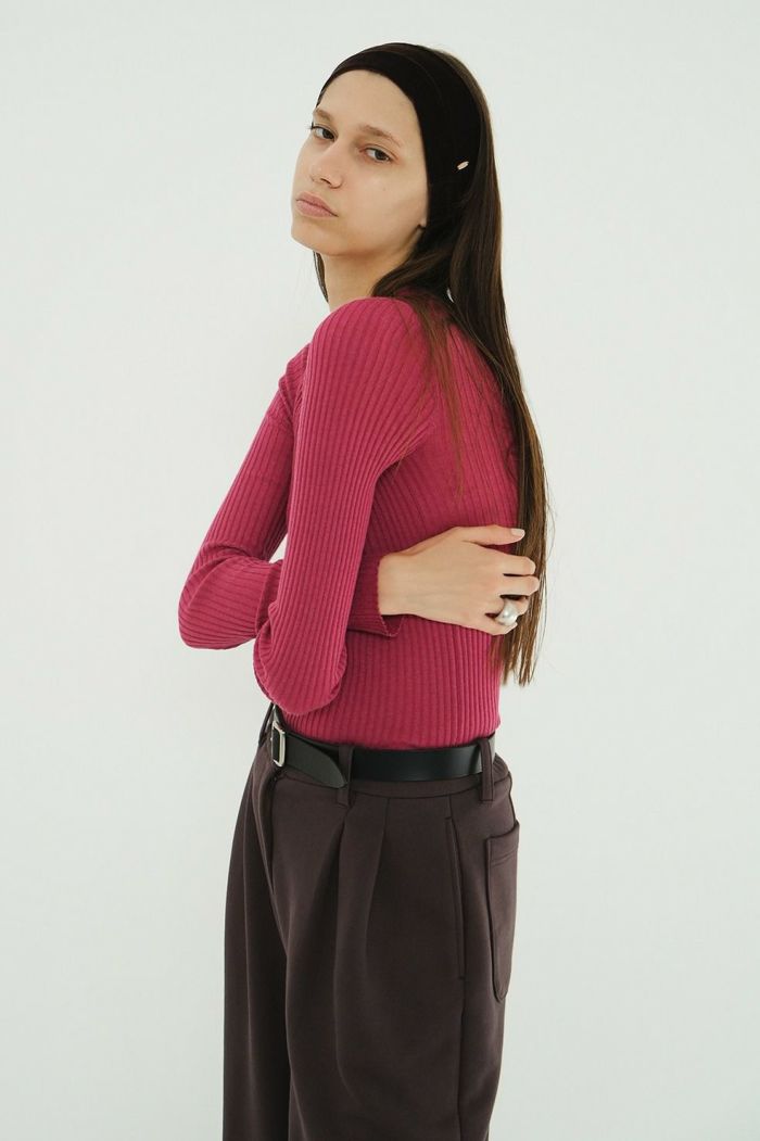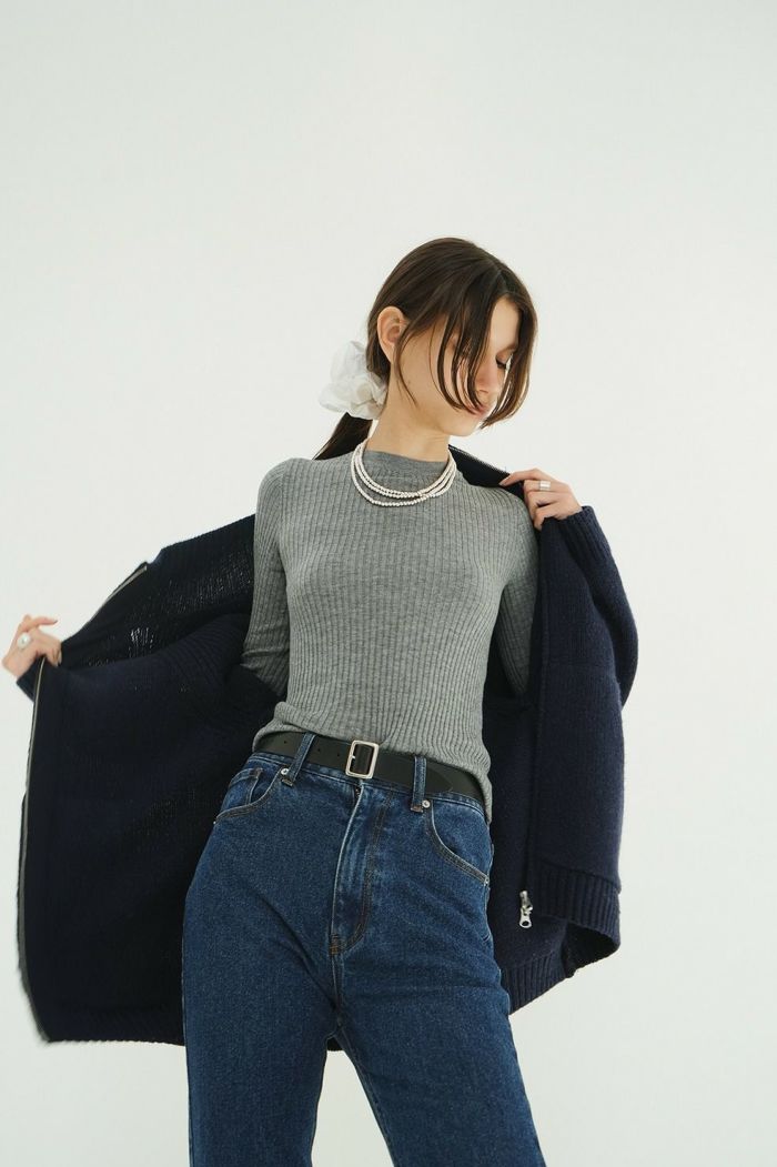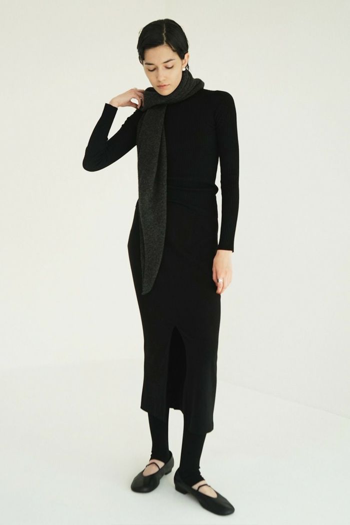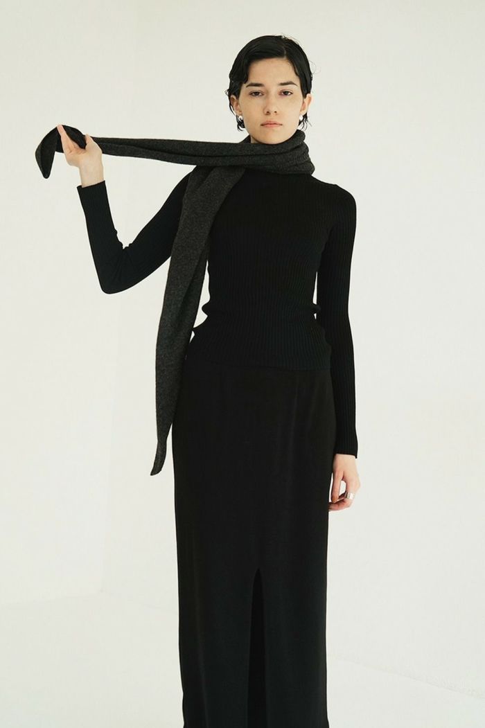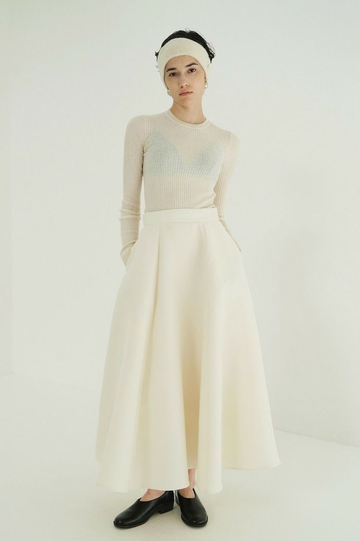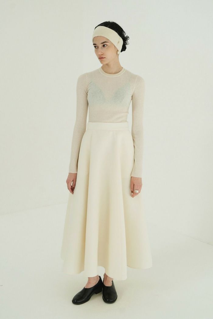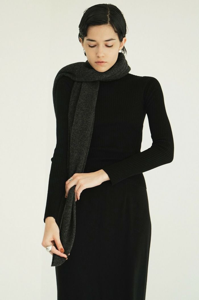 細い番手の糸を16ゲージで丁寧に編み立てた、繊細なシアーリブニット。