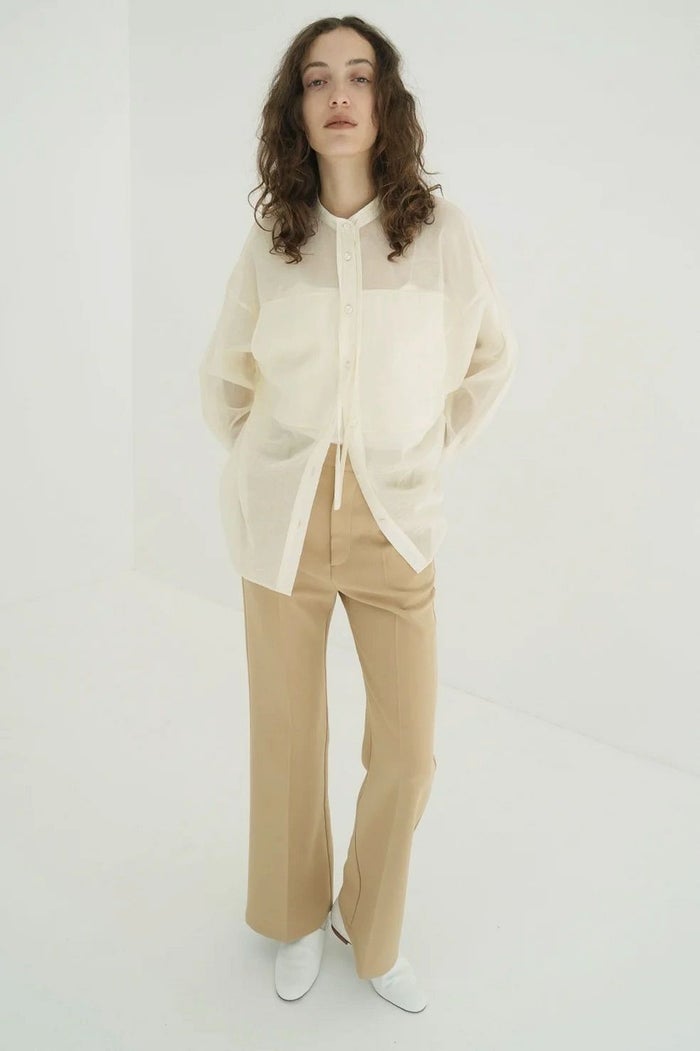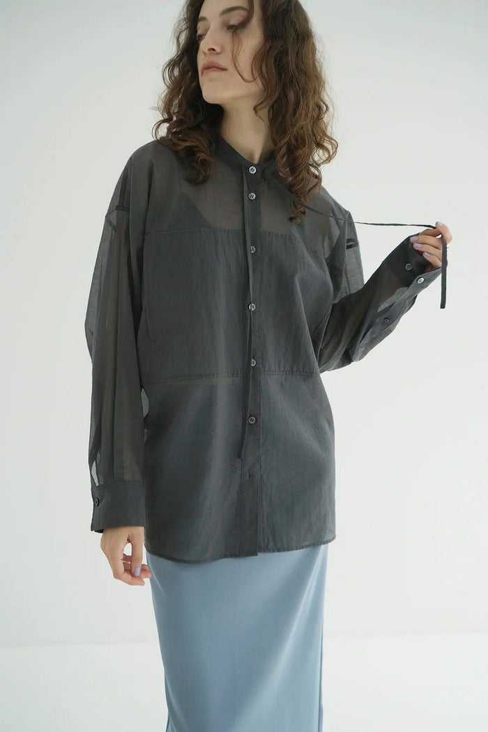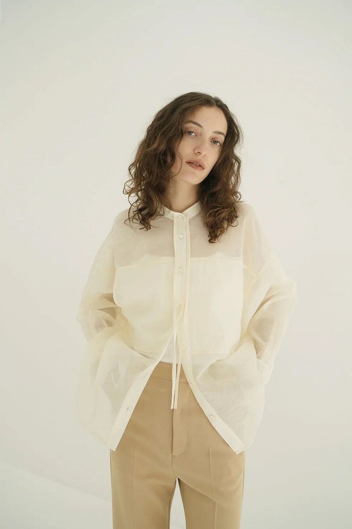 オーバーサイズでメンズライクなシルエットながら、ポケットディテールや首元のストリングデザイン等でカジュアルになりすぎないディテールに拘った一枚。大きめにデザインされたアームホールから生まれるニュアンス感のあるフォルムがポイントです。