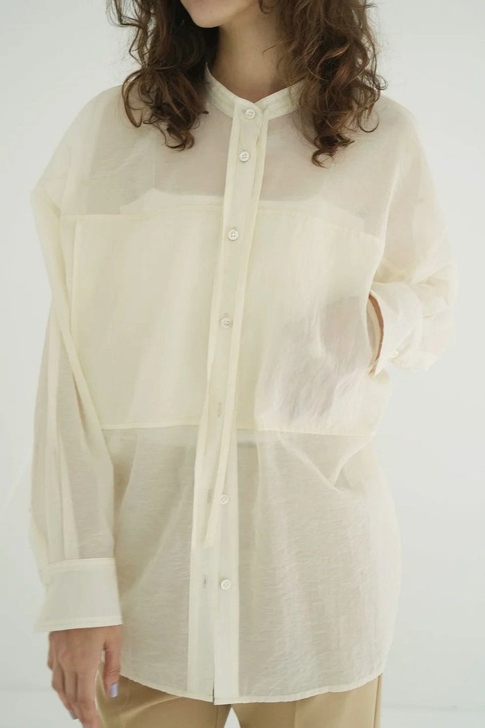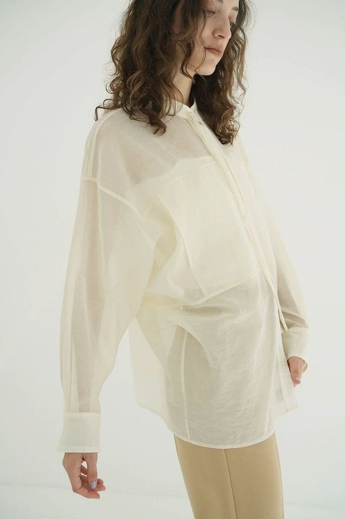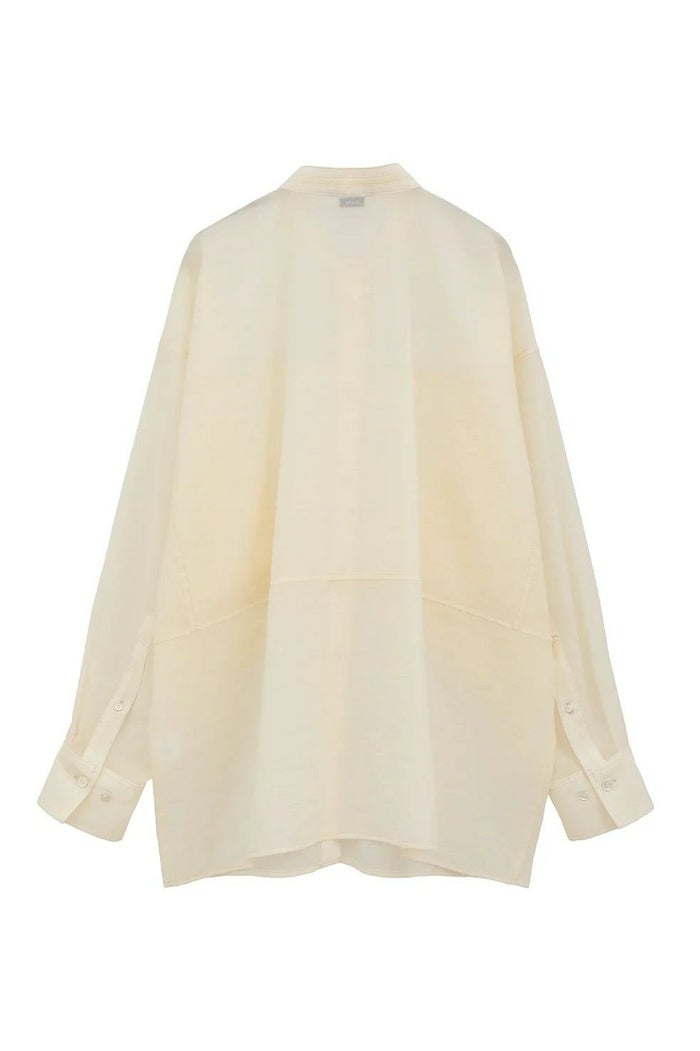 ドライタッチなコットン混素材を使用した、ドルマンシャツ。