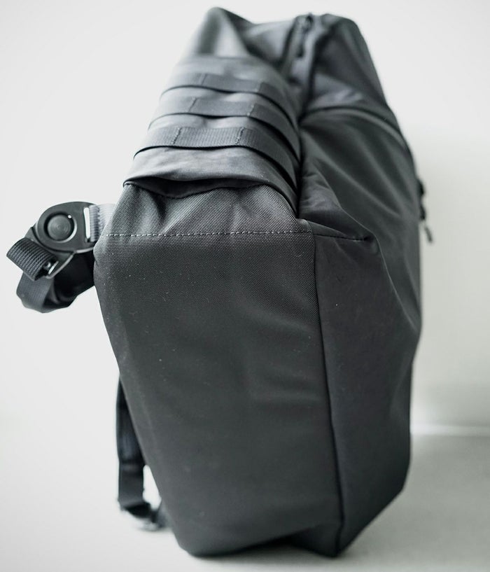 容量が増えることによる耐荷重を考慮して底の部分のパーツを、耐久性に優れたバリスティックタイプナイロンで切り替えた仕様になっていることです。