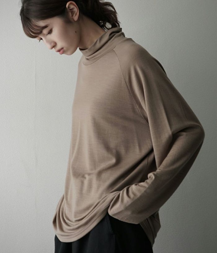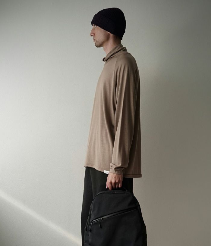 ネック寸法を少し緩めにデザインしたタートルネックTeeです。