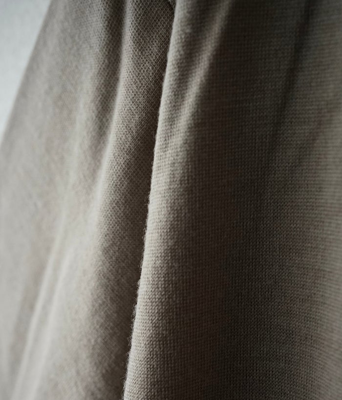 高級な原料をより多く使用して作ることになってしまいますが、しっかりとした肉厚で透け感も抑えられかつ、糸を太くしても高級感があって、肌触りや着心地を損なわないので、あえてこの方法で作りました。