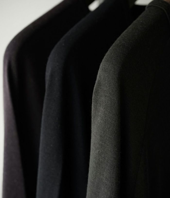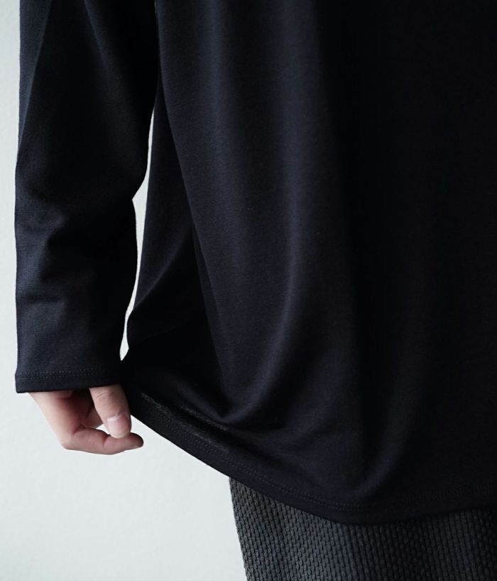 ソフトな風合いで非常に滑らかなので着ていることを忘れるかのようなストレスフリーな着心地が心地よく、ドレープ感と上品な光沢感もあります。