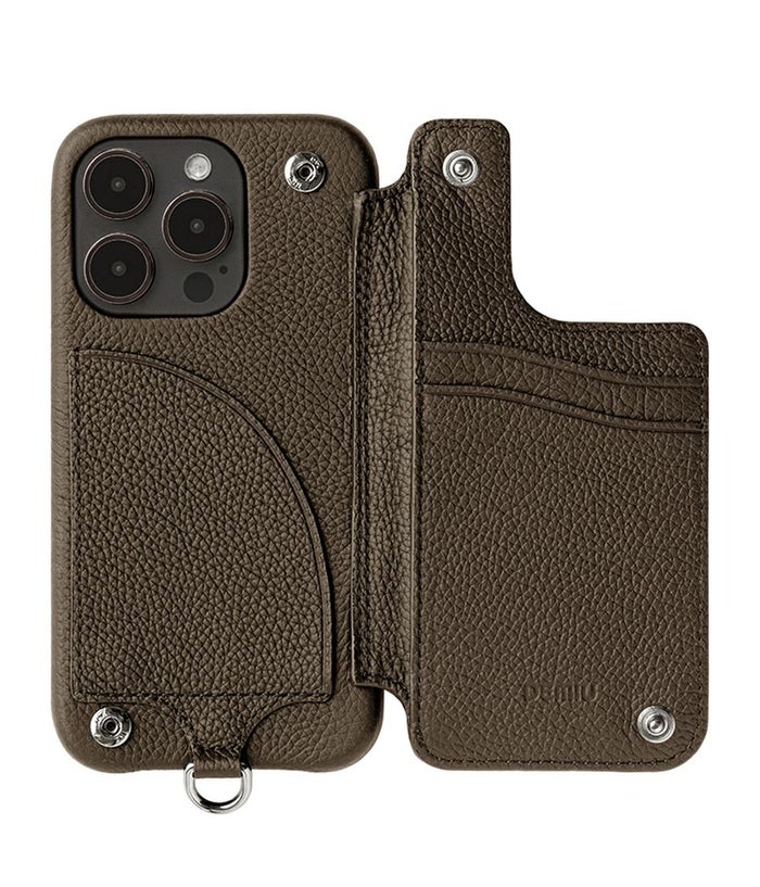 ・ショルダーストラップを付けられるD型リング付き。別売りのストラップと組み合わせてコーディネートが可能。
