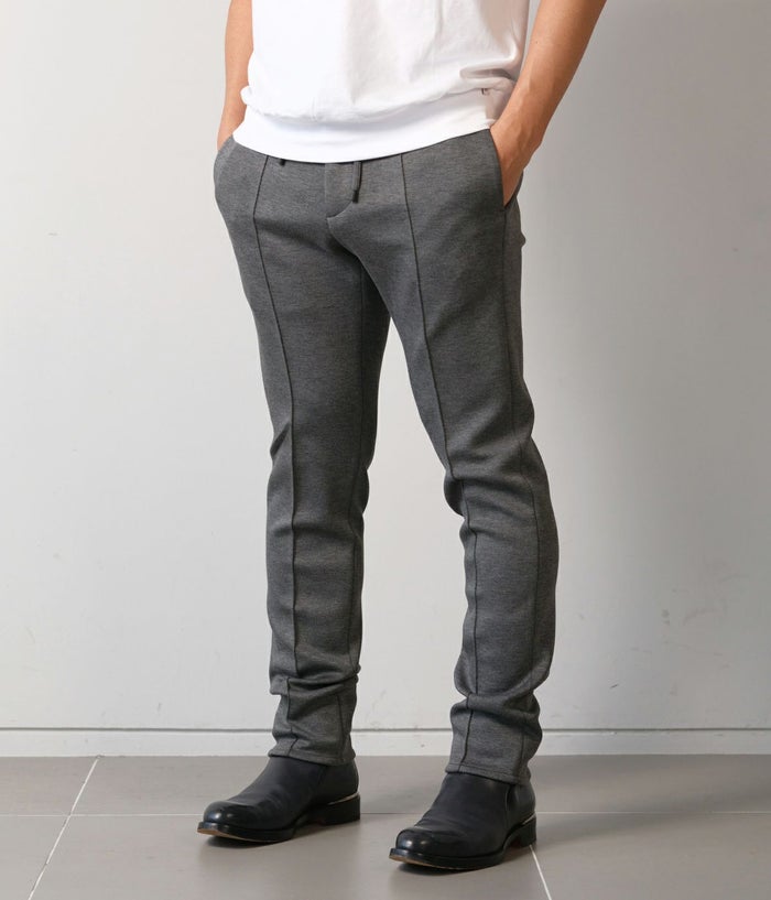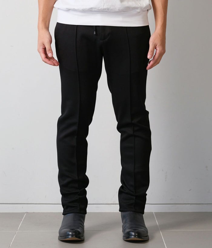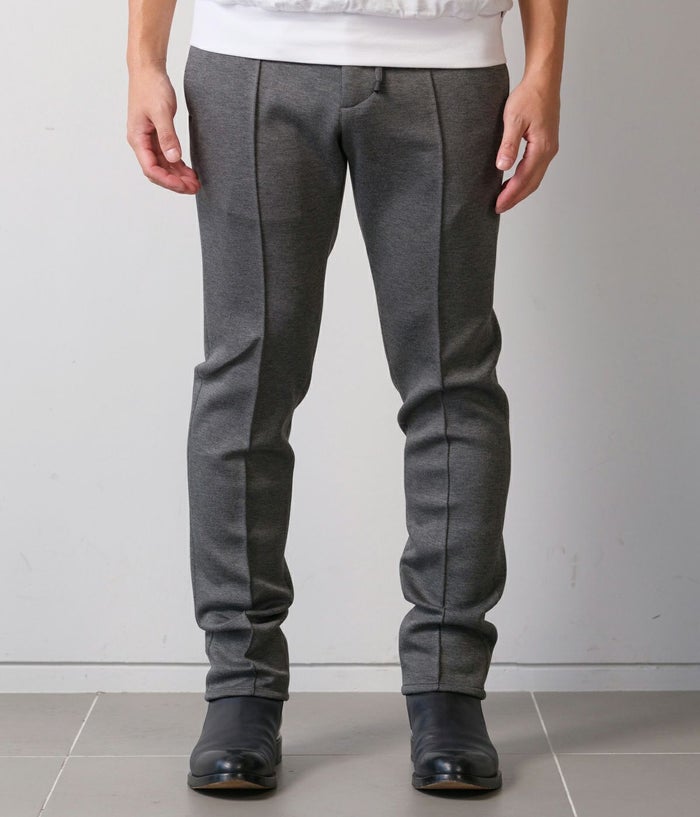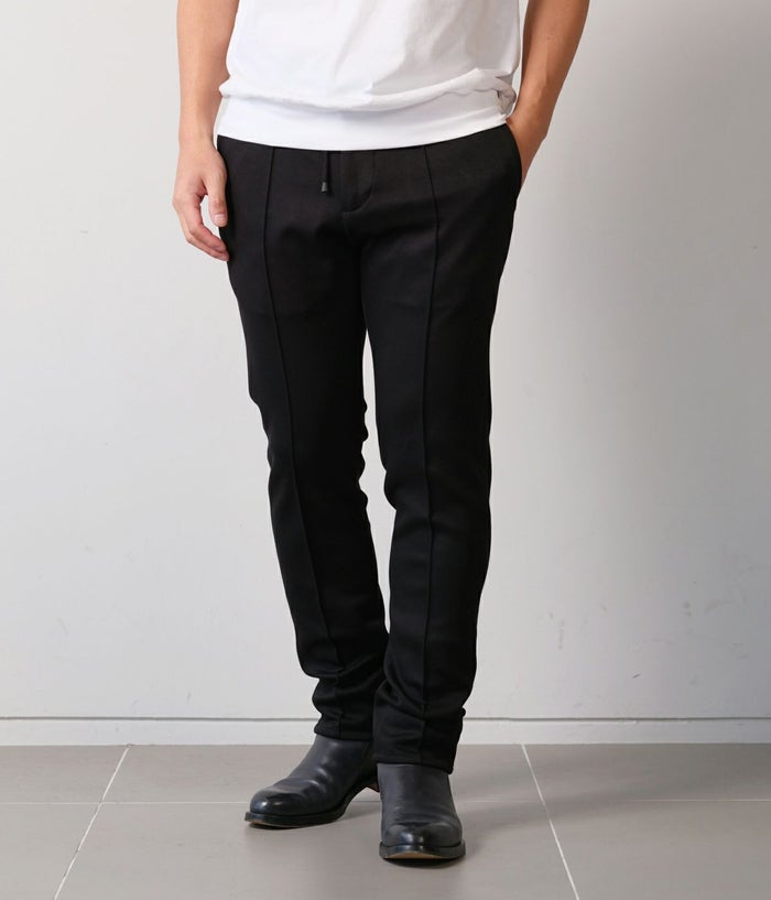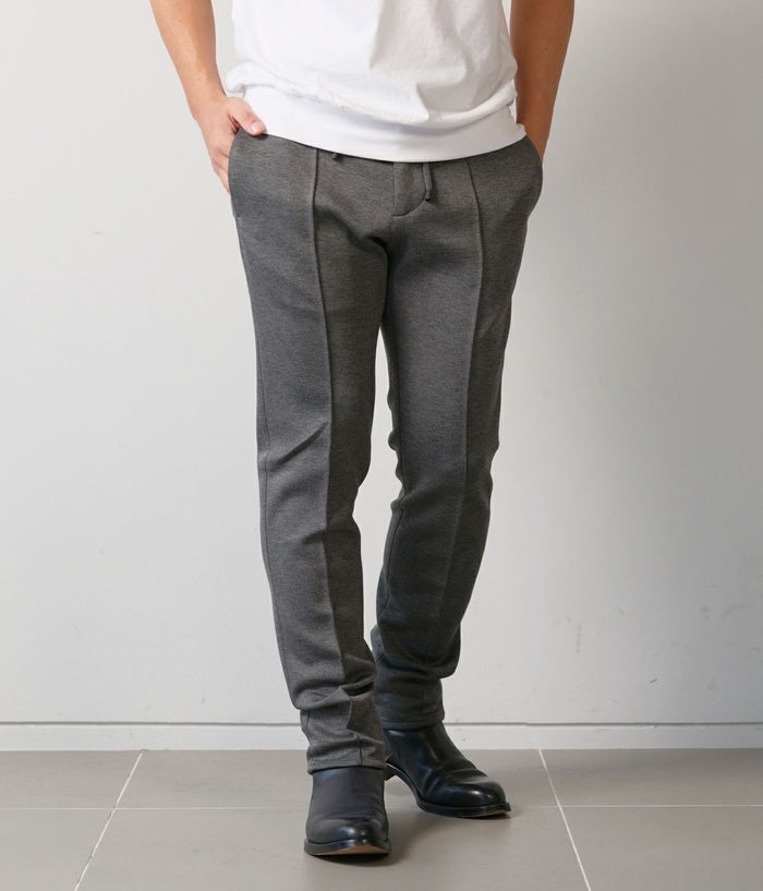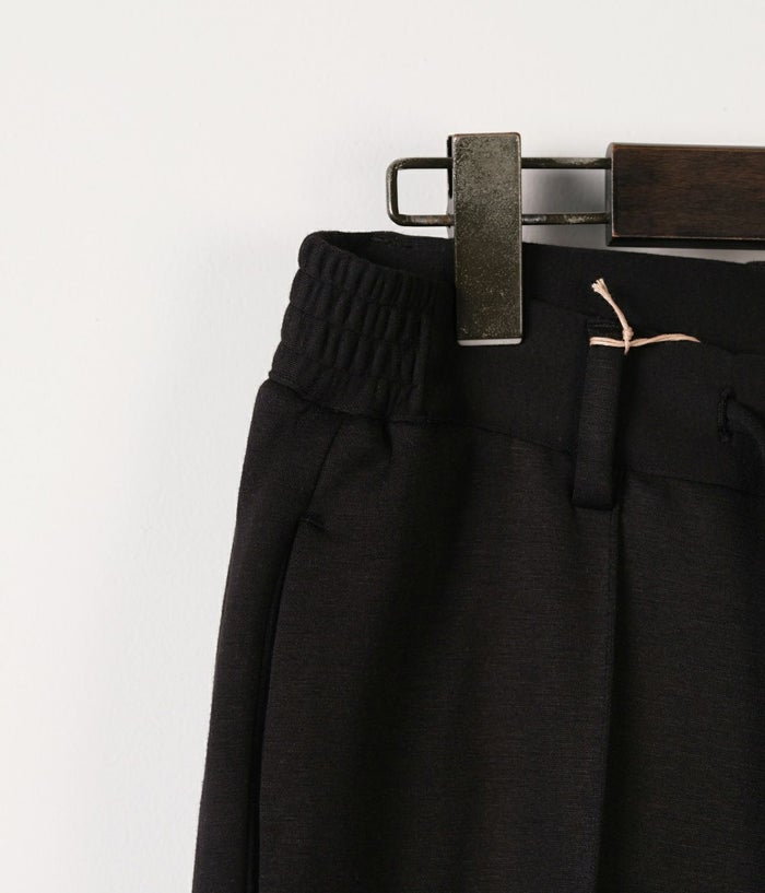 トラウザー専業ブランドとして創業し雑誌LEONでも絶賛されジャブスを一躍有名にしたモデルのマサッチョ。 リラックスパンツでありながら、これまでにないほどの美しいボトムラインが魅力のこちら。 最大の特徴とも呼べるフロントに入ったクリース。これにより縦のラインが強調され、足長効果を生み、スリムテーパードなシルエットがより際立つ、きれいなシルエットを生み出しています。 また、両サイドウエストにシャーリングゴムが入ることによってウェストに沿う腰廻りを実現しています。 ドローコードと両脇ゴムシャーリングに加えてベルトループも付属。 ベルト有りもしくはベルト無しの両方で、気分に合わせてコーディネートを楽しめます。
