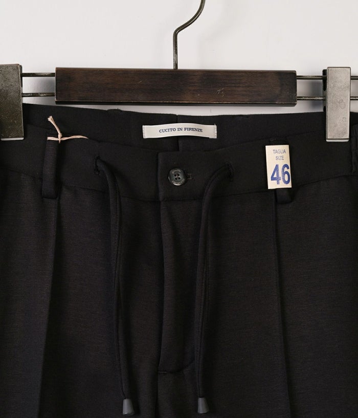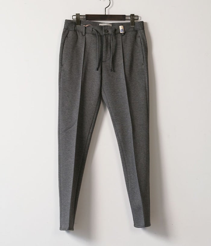 このしっかり伸びて、しっかり戻るハリのあるジャージー素材に惚れ込みこの素材のパンツ2型、ジャケット1型を展開させて頂きます。パンツは細身のMASACCIO/M1と緩めのMANFREDOの対照的な2モデル。そしてそのどちらのシルエットともにハマるPUCCINO。スポーティな雰囲気ながらも光沢感のある素材がラグスポスタイルに最適です。イージーケア性も兼ね備えており単体でも使いやすいですが是非休日セットアップでお過ごしくださいませ。