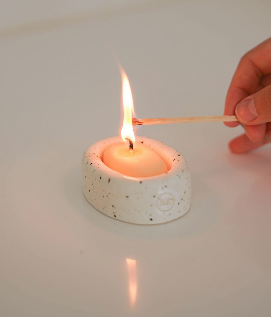 5735 Candle & Holder Gift Set Oatmeal stone version