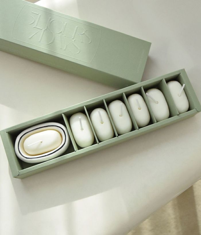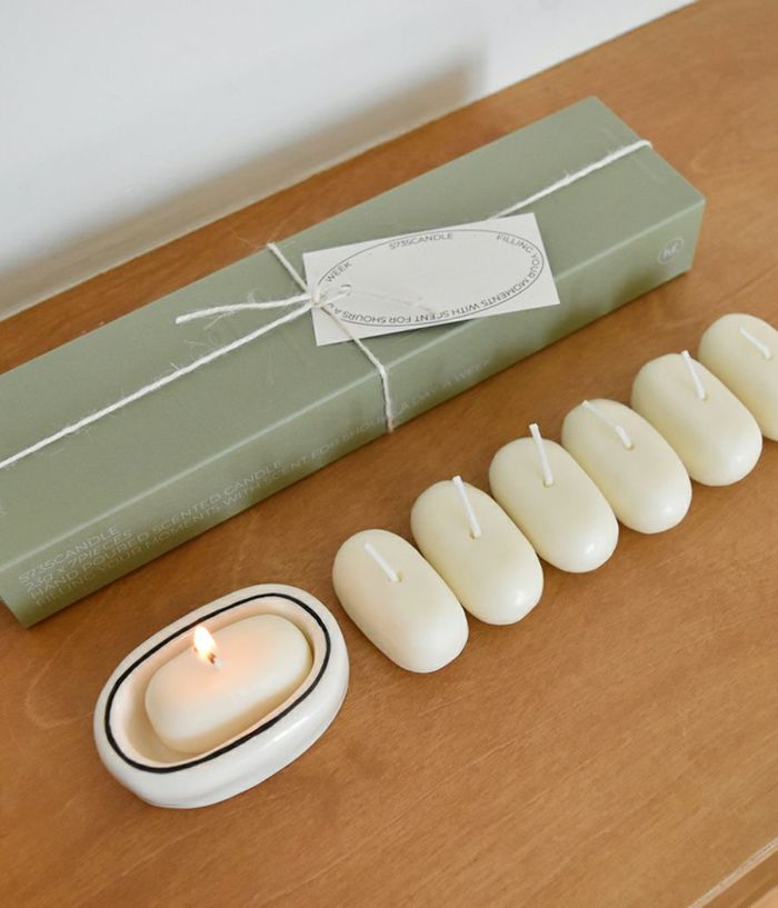 5735 Candle & Holder Gift Set Oatmeal stone version