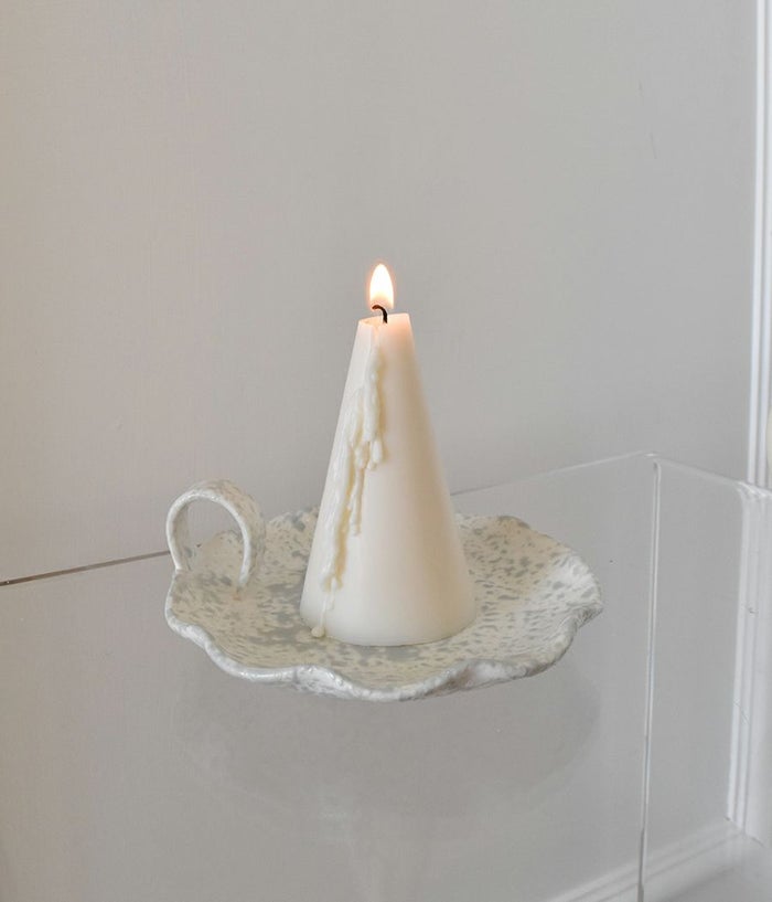 5735 Candle & Holder Gift Set Oatmeal stone version