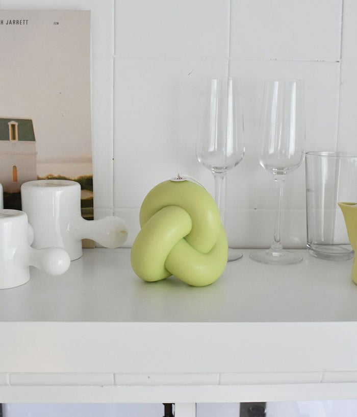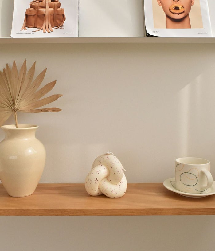 ハニーフラミンゴのデザインキャンドル「チューブノットシリーズ」です。ふっくらとした浮き輪が面白く調和のとれた形でねじれているデザインです。