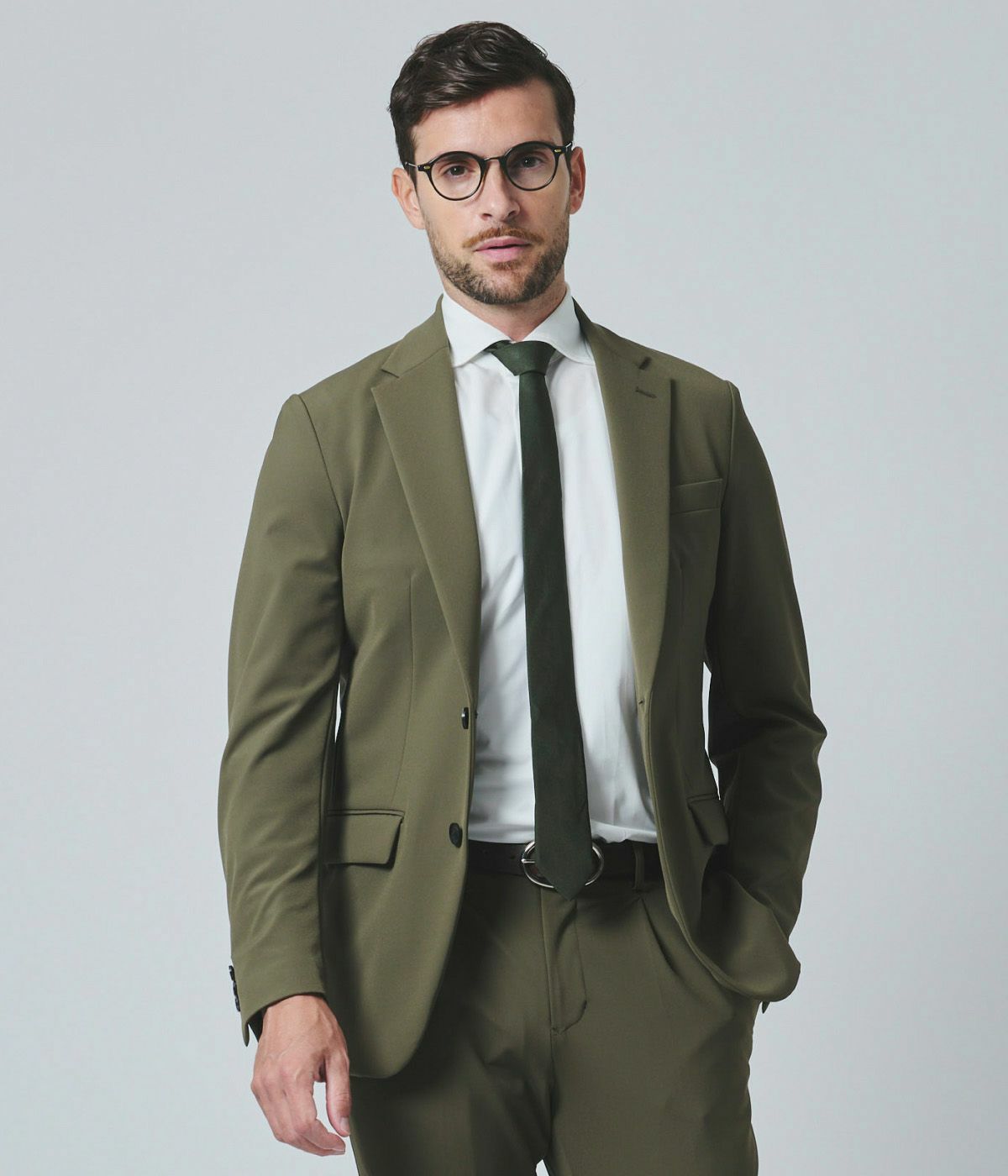 急なフォーマルな場面にも安心して対応できるジャケットを、二重織の2WAYストレッチ素材で仕立てました。高いハリとコシを持ちながら、ストレッチ素材とは思えないほど上質な生地感が、快適な着心地と品格のある佇まいを両立しています。