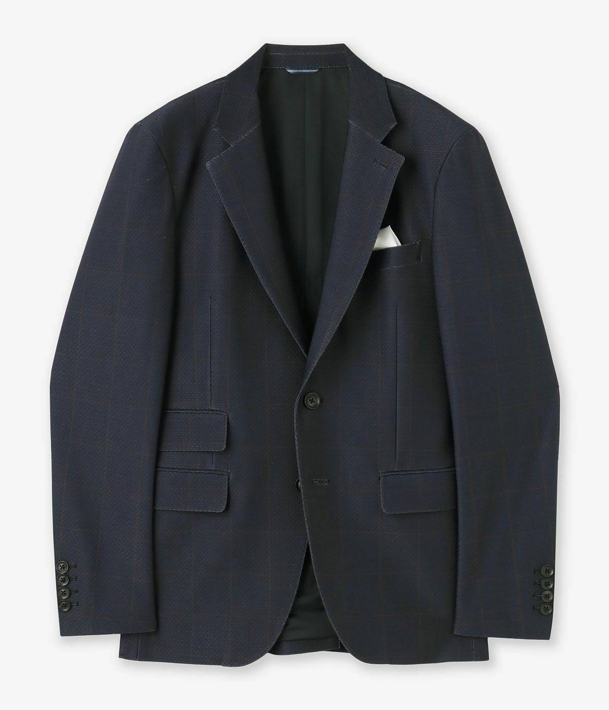 ノッチドラペルを採用し、オン・オフ問わず着用できる汎用性の高いデザインです。総裏仕様ながら、裏地には吸水速乾性に優れた素材を使用し、通年快適に着られる仕上がりです。
