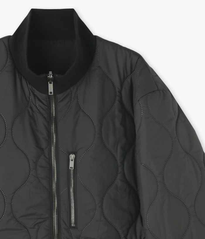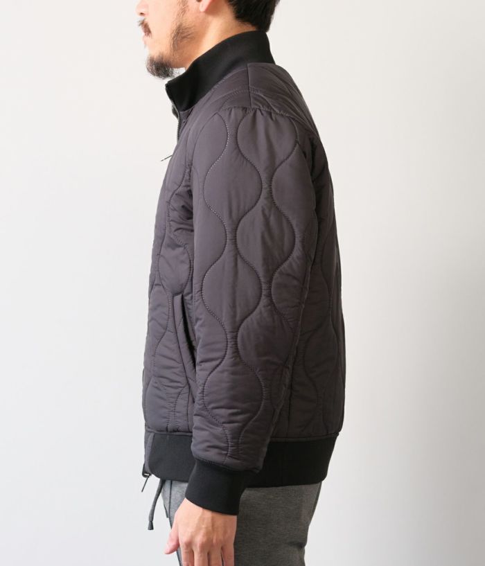 キルティングの表情が品よく映えるスタンドブルゾンは、襟の立て方ひとつでガラリと雰囲気が変わる洒脱な一着。