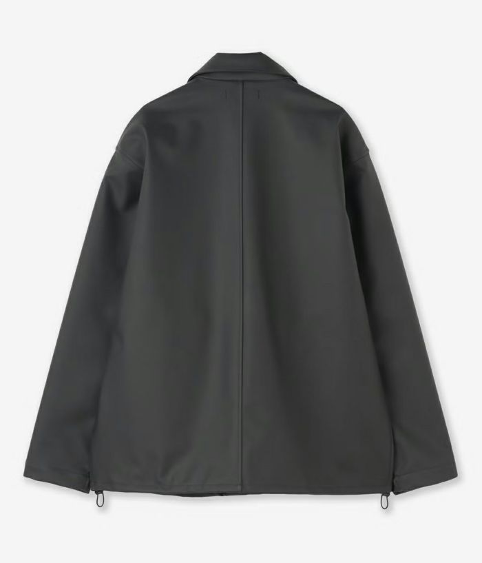 フロントはスナップボタン仕様で、襟付きデザインが程よいきちんと感を演出。ボックスシルエットをベースにややゆとりを持たせたフィット感で、抜け感ある着こなしが可能です。裾にはドローコードを配し、シルエットの調整も自在。ラフにも締めても決まる、計算されたバランスに仕上げています。