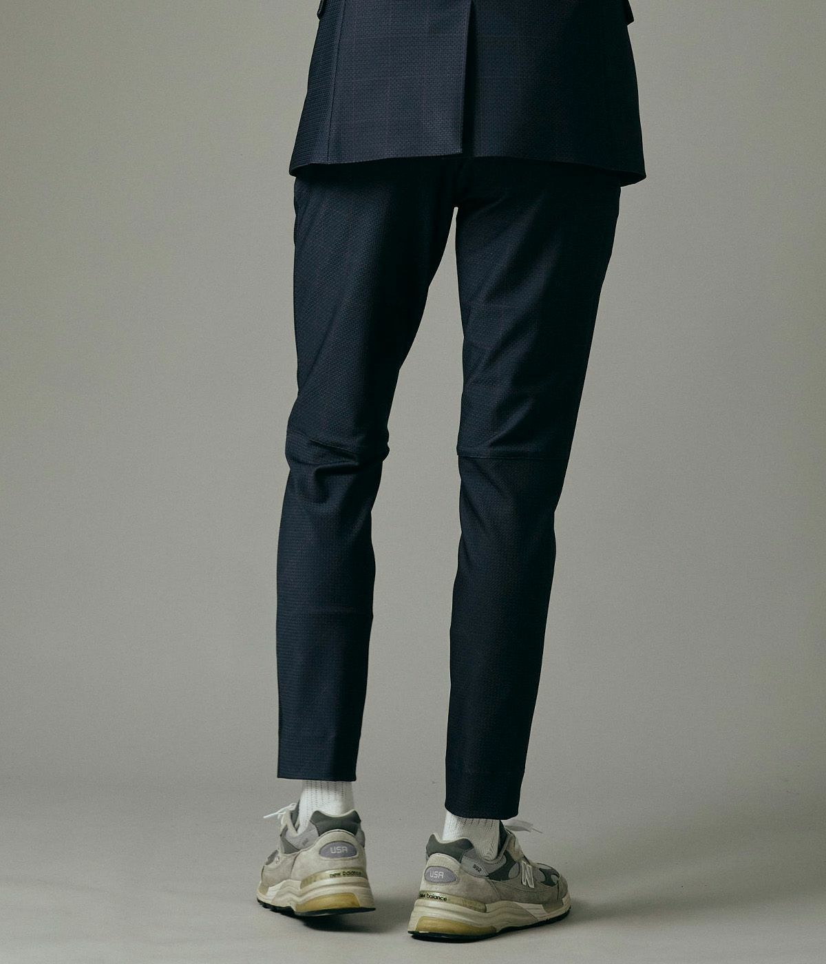 ブランドを象徴する1タックスリムシルエットをベースに、腰まわりには程よいゆとりを持たせ、洗練された見た目と快適な穿き心地を両立しました。スリムながらもストレスフリーなフィット感で、ビジネスからトラベルまで幅広く活躍する万能パンツです。
