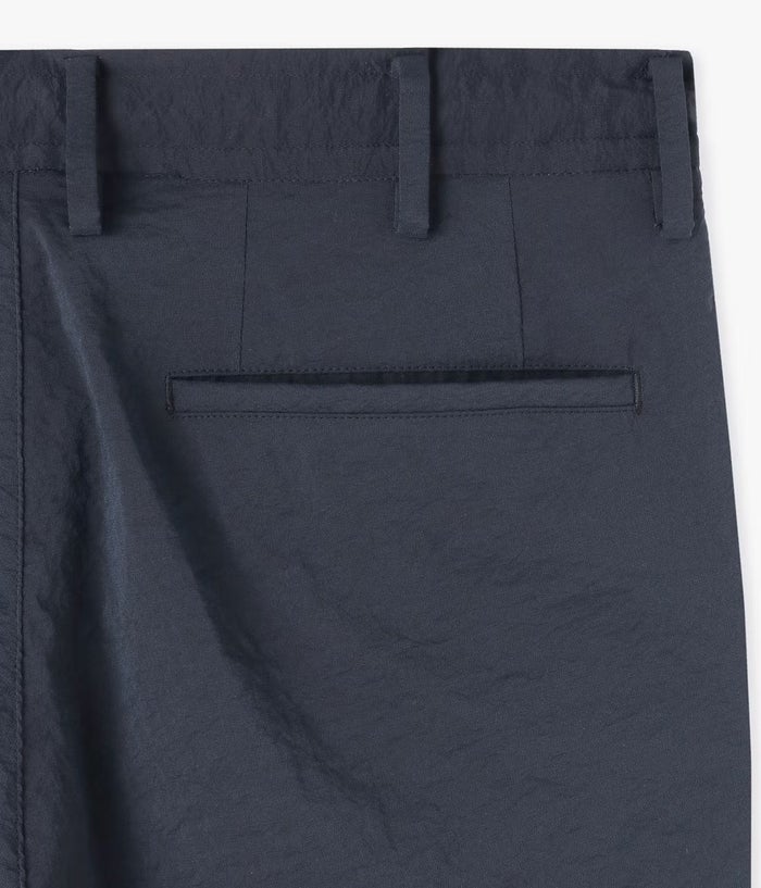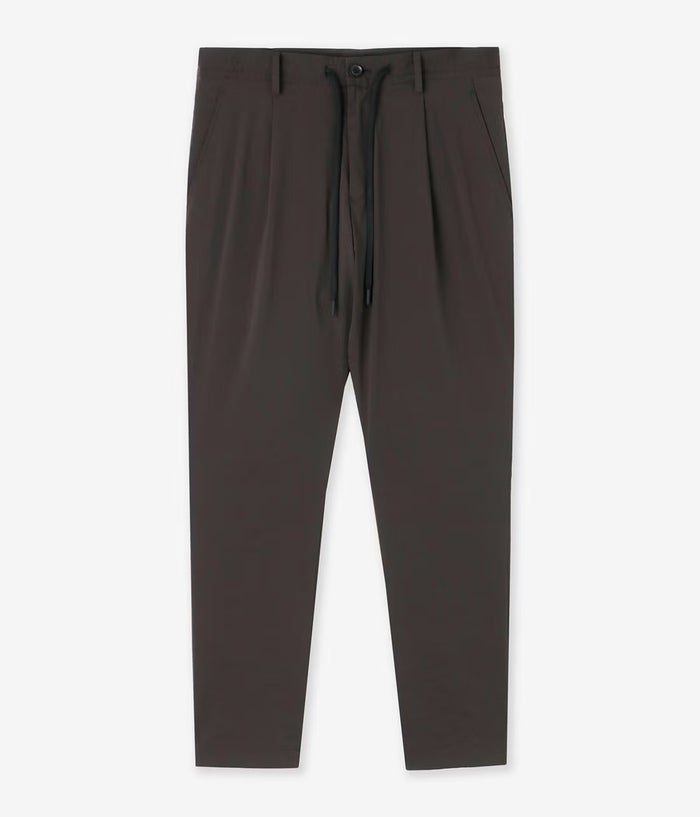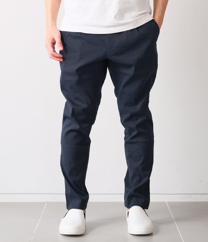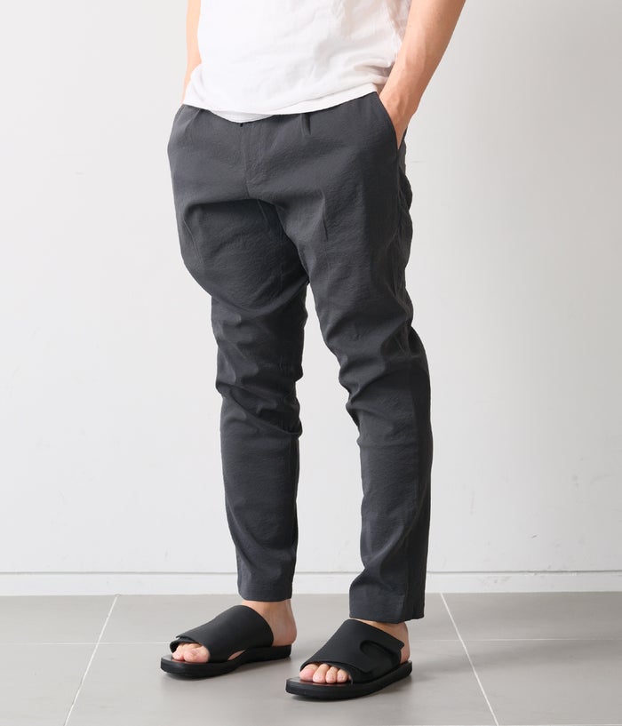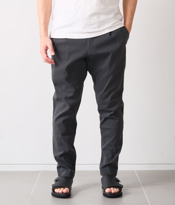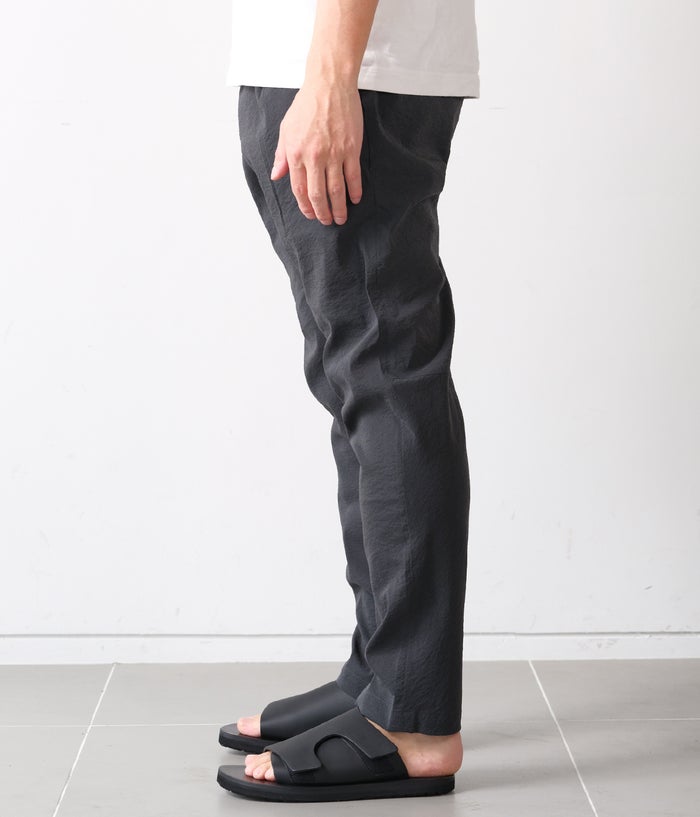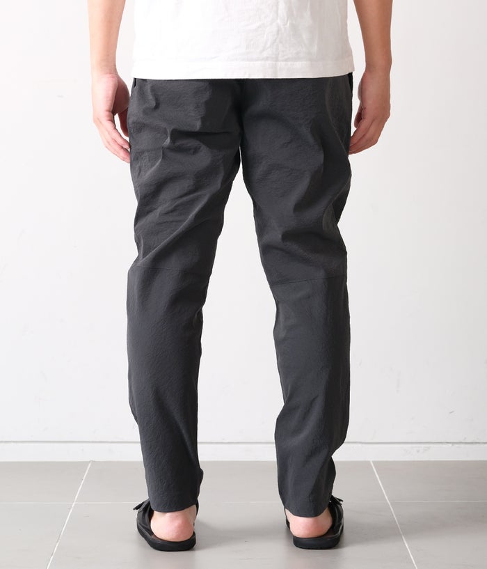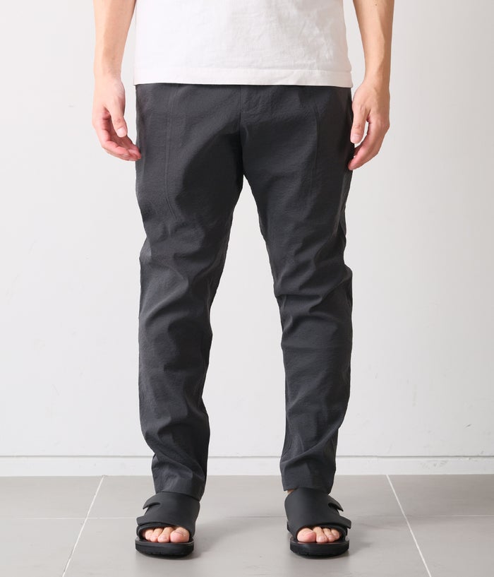 洗練された抜け感が、日常のスタイルを一段引き上げる一本。 ハイキックバックを備えたウルトラライト素材は、しなやかな風合いと優れたストレッチ性が魅力。二浴染めによって生まれる奥行きのある色味は、シンプルながらも表情豊かで、ネイビーはブラックを掛け合わせることで深みのある都会的な印象に。 従来のシルエットをベースに、膝から裾にかけて程よくゆとりを持たせたレギュラーフィット。1タック仕様による自然な立体感に加え、ウエストはイージー仕様で快適な穿き心地。さらに裏面の脇にはループを配し、スピンドルを内側に収納した際にサイドへ逃がせる設計に。未使用時もすっきりとした見た目をキープ。 軽さと機能性、そして品のあるシルエットを兼ね備えた一本は、都会的な大人のスタイルに自然と馴染み、オンオフ問わず活躍してくれます。 同素材のULTRA LIGHT JACKETとセットアップでお使いいただけます。 着用モデル:184cm サイズ:4(L)