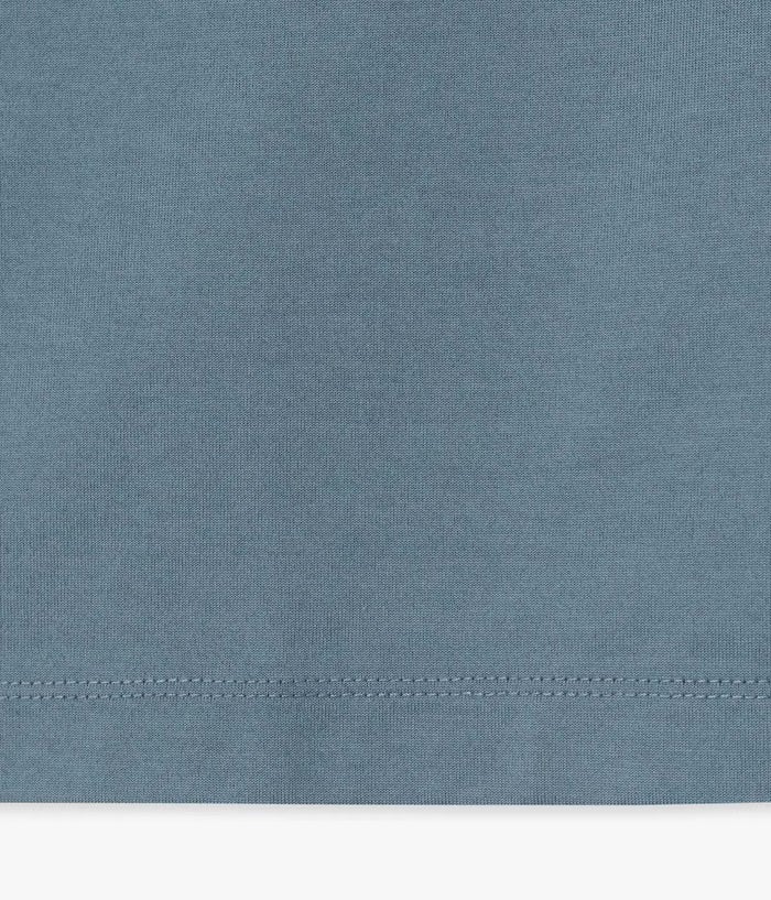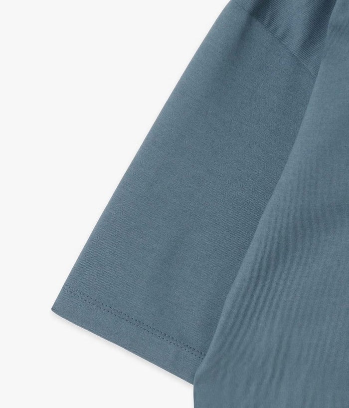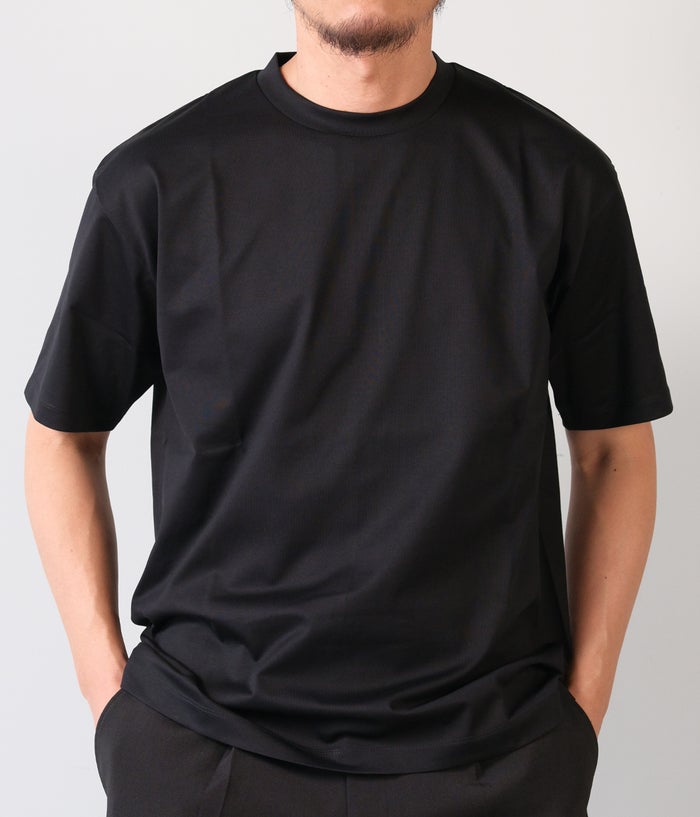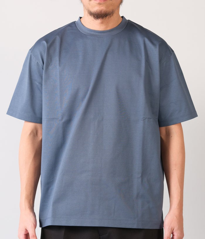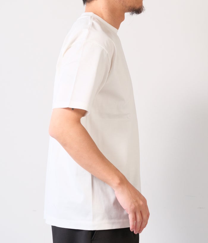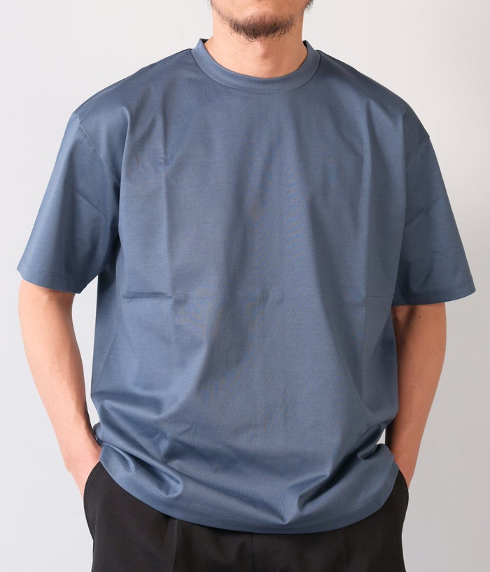 生地には、24ゲージ編みのシルケット天竺を採用。20/1糸を3本撚り合わせることで、しっかりとした肉感と滑らかな表面感を実現しています。さらにダブルでシルケット加工を施すことで毛羽を抑え、上品でクリアな表情に。100回の洗濯にも耐える耐久性を備え、日常使いでも安心のタフさを誇ります。