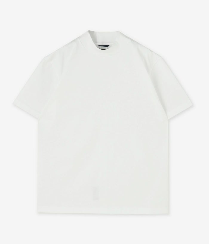首元を程よく覆う、バランスの取れた高さのモックネックが特徴の定番ショートスリーブTシャツ。シンプルながらもこだわりの詰まった一着です。 junhashimoto定番の“101シリーズ”素材を使用。100回洗ってもヘタらない、タフさと上品さを兼ね備えた天竺生地。 シルエットはすっきりと仕上げつつ、首元はハイネックやタートルネックほど高くない絶妙な高さで、窮屈感なく自然にフィット。背面中央にはフライス素材の切り替えを施し、シンプルな中にも動きを感じさせるアクセントに。 見た目の上質さと実用性を両立した、大人のためのベーシックTシャツ。洗練されたカジュアルスタイルにもおすすめです。
