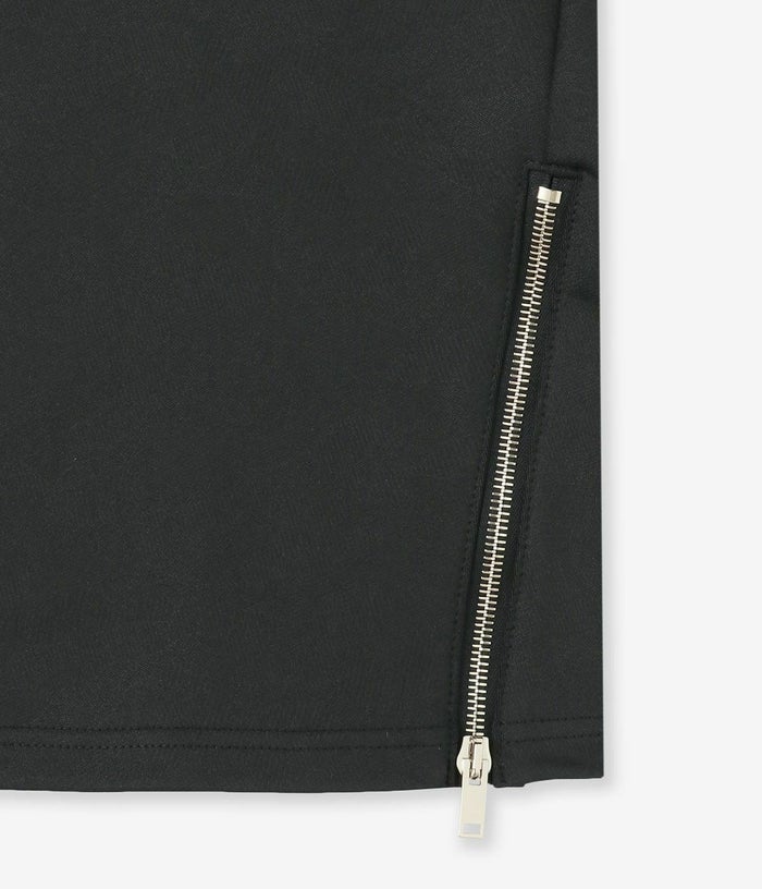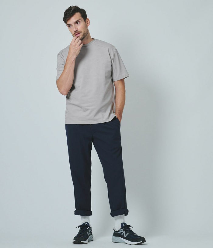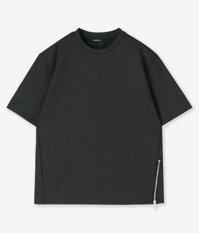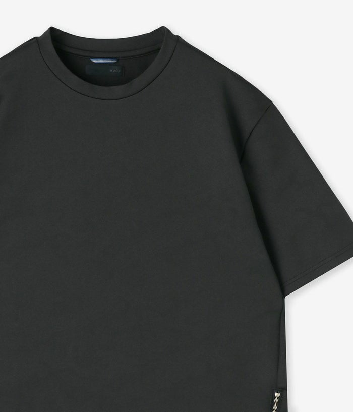 肩幅を広めに取った設計で、自然に肩が落ちるリラックス感のあるシルエットに。小顔効果も期待できるデザインです。ネックラインは柔らかな丸みを持たせたクルーネックで、首元に優しくフィット。左裾には、イタリアのRACCAGNI社製ジップをアクセントとして配置し、シンプルな中に個性が光る仕上がりに。