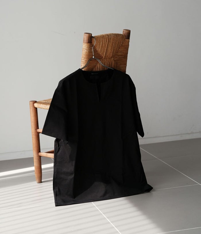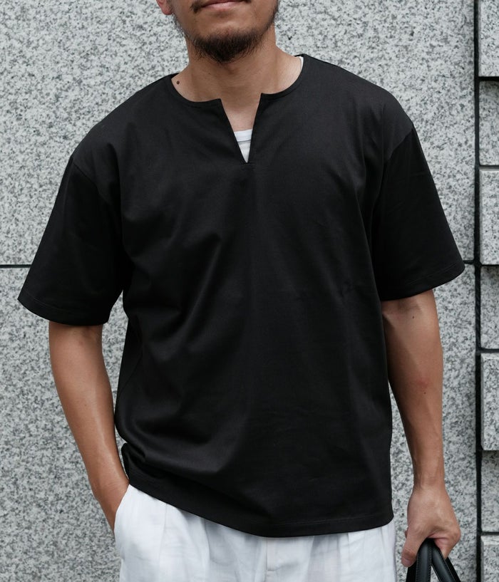 ・涼しげなスリットネックのTシャツ