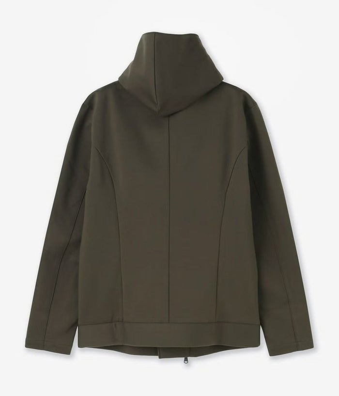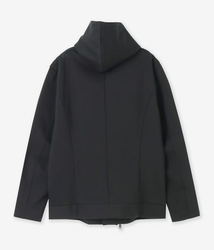 コートの優雅さとライダースの色気を融合させ、都会的に羽織れる一着へと昇華したフーデッドライダース。