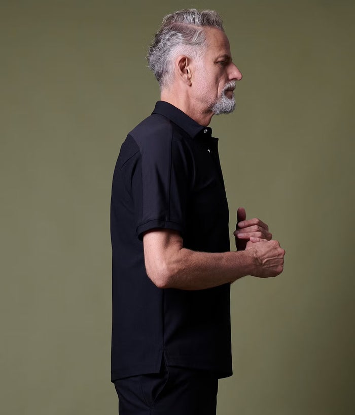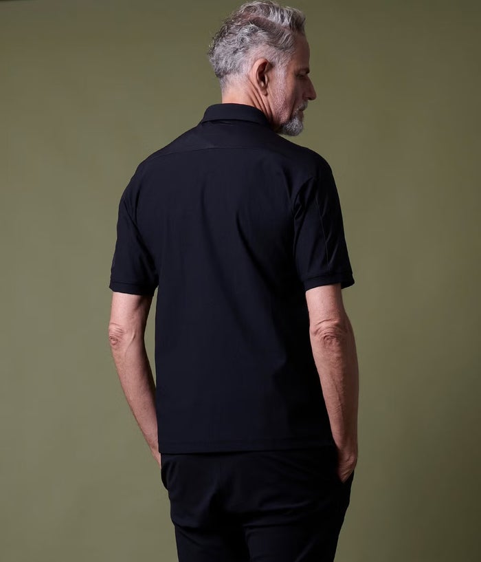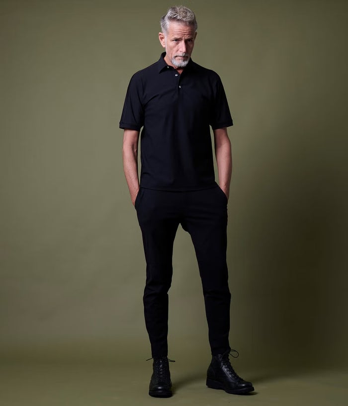 高機能素材と上質な着心地を両立したDRY POLOは、日常の装いに洗練された印象を添える都会派アイテム。