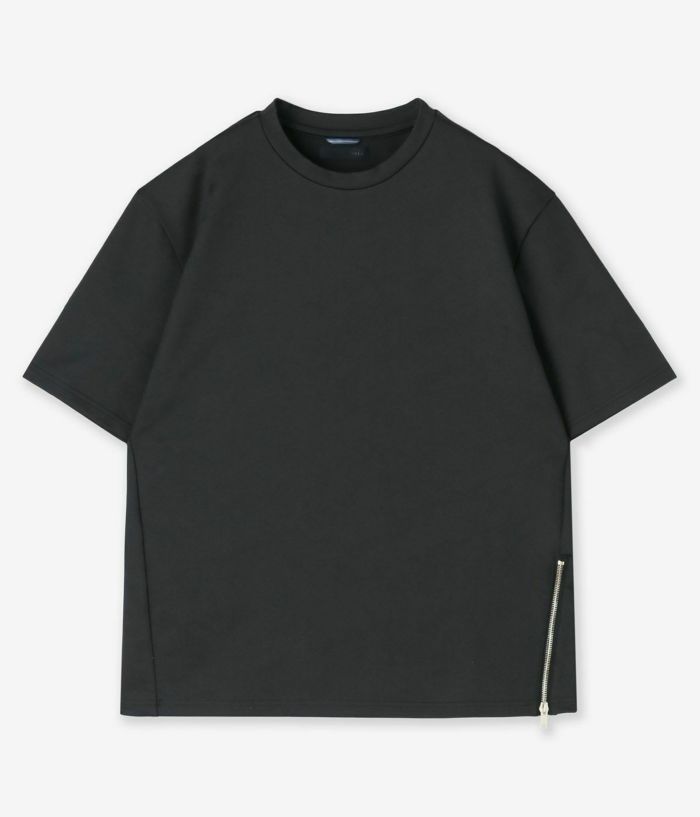 肩幅を広めに取った設計で、自然に肩が落ちるリラックス感のあるシルエットに。小顔効果も期待できるデザインです。ネックラインは柔らかな丸みを持たせたクルーネックで、首元に優しくフィット。左裾には、イタリアのRACCAGNI社製ジップをアクセントとして配置し、シンプルな中に個性が光る仕上がりに。