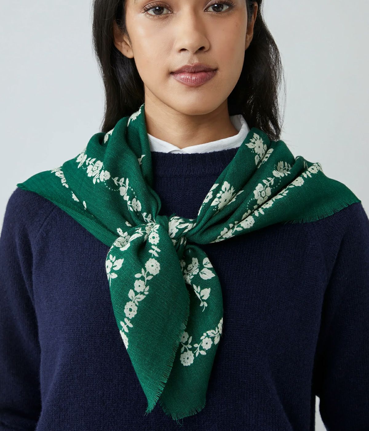 「ロンドン スカーフ N°797」は、詩情あふれるバンダナの精神をモダンに表現した一枚です。柔らかく軽やかなウールを手織りで仕立て、伝統的なバンダナに着想を得たコントラストの美しい花柄が印象的。 90×90cmのスクエアシルエットは、首元やヘアアレンジ、バッグのアクセントなど、さまざまなシーンで活躍します。首に巻くだけでも簡単に洗練された印象を演出し、特徴的な「MOISMONT」のシグネチャープリントがさりげなく存在感を放ちます。 エレガントさとカジュアルさを兼ね備えたこのタイムレスなスカーフは、季節を問わずコーディネートを引き立てる万能なアクセサリーです。