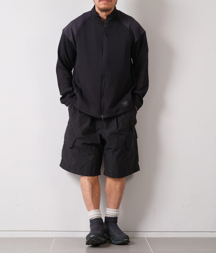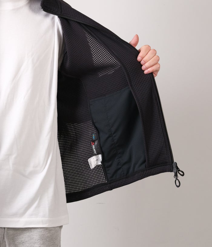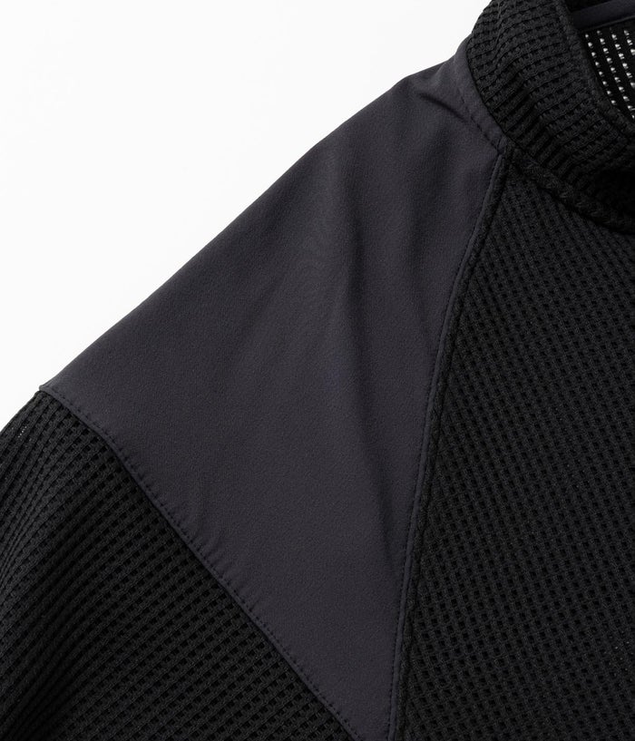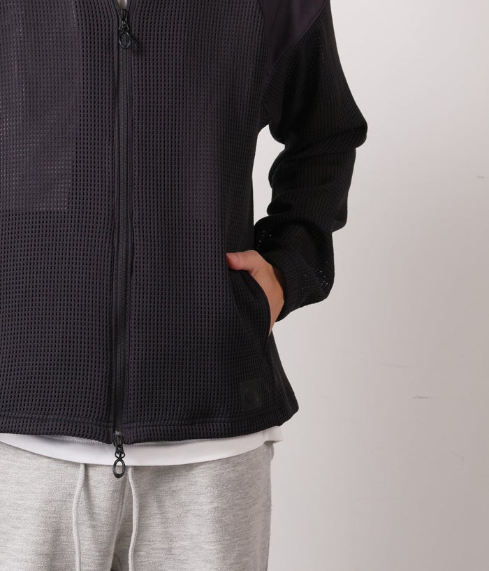 ここ数年メンズでも見かけるようになったメッシュアイテム。中性的な雰囲気に寄ってしまうものが多いのですがさすがはMOUT。男らしい雰囲気のメッシュアウターが完成しています。スッーっと風が通り抜けていくので夏でも快適に着用可能です。
