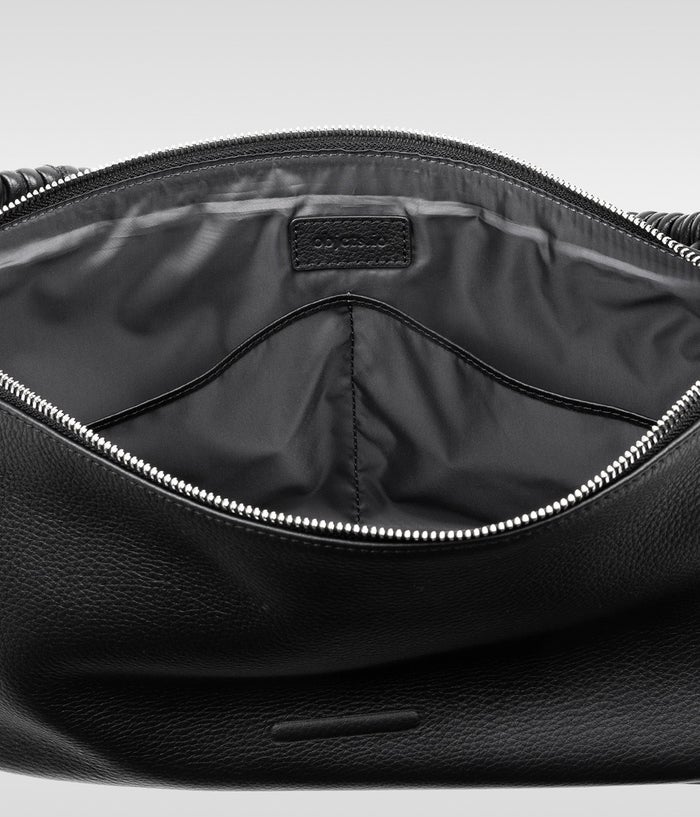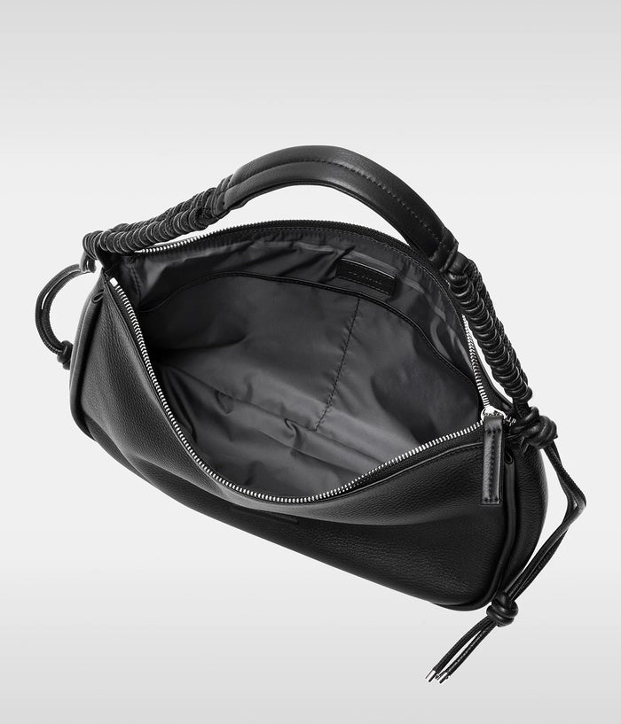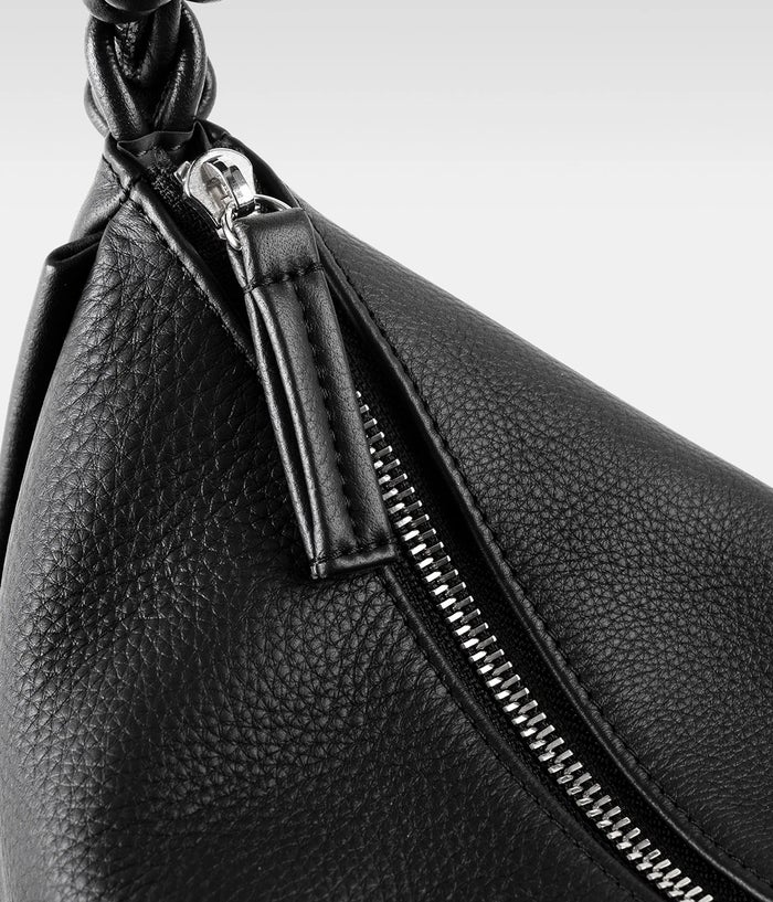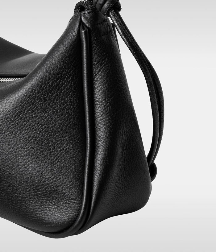 ・身体に沿う、レザーならではの曲線的で美しいシルエットが特長のワンショルダーバッグ。 ・装いのアクセントになるスネークノットを配したストラップ。 ・ちょっとした外出に最適な収納力。500mlペットボトルも収納可能。 ・外装に本牛革で仕立てた防水シュリンクレザー(シルバーを除く)を採用。 ・ファスナーにYKKエクセラの金属ファスナーを採用。