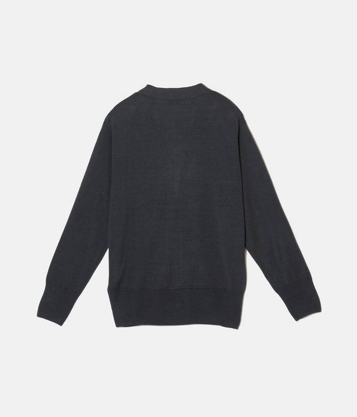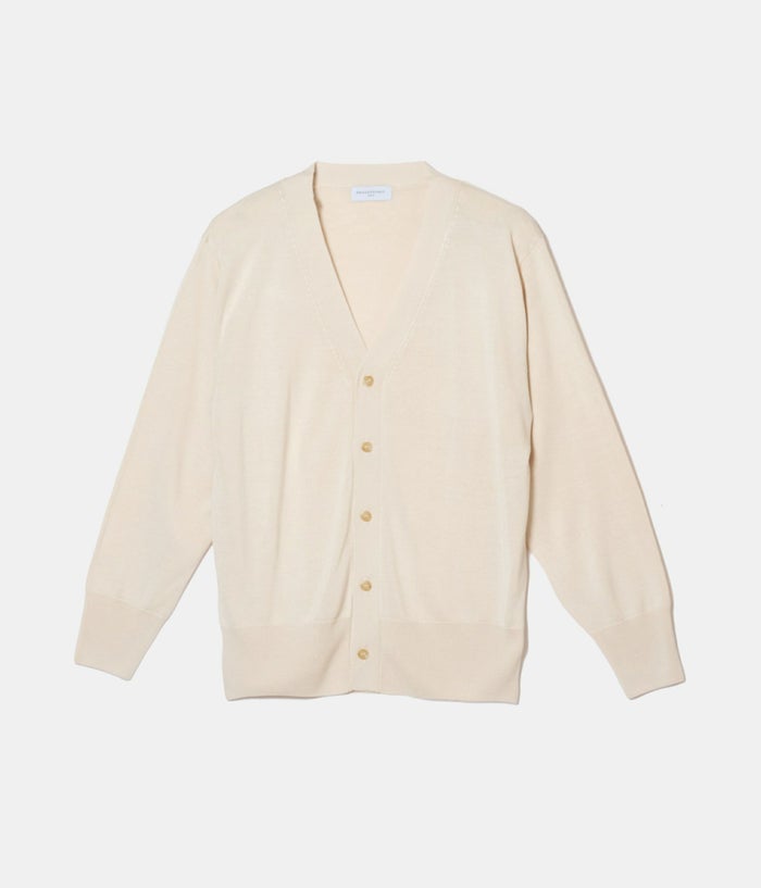 シルクの中でも特に質の高い品種を使い編立られているニットカーディガン。編地にも拘り、男性でも着用しやすく透け感の少なく仕上げれられいます。どの季節にも対応しやすく、羽織物としてとても汎用性の高い素材のシルクは1年中活躍してくれる。シルクの程よい光沢感が、品のある1着に仕上がっています。