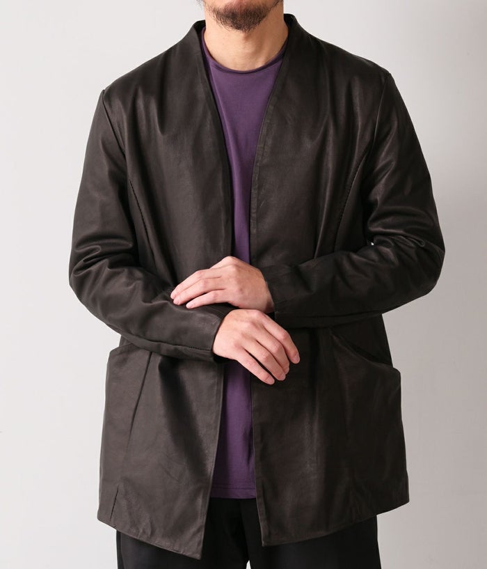 存在感のあるレザーカーディガン。やっぱりRIPVWNINWINKLEといえばレザーは欠かせないですよね。是非一度袖を通していただきたい大人のレザーカーディガンです。