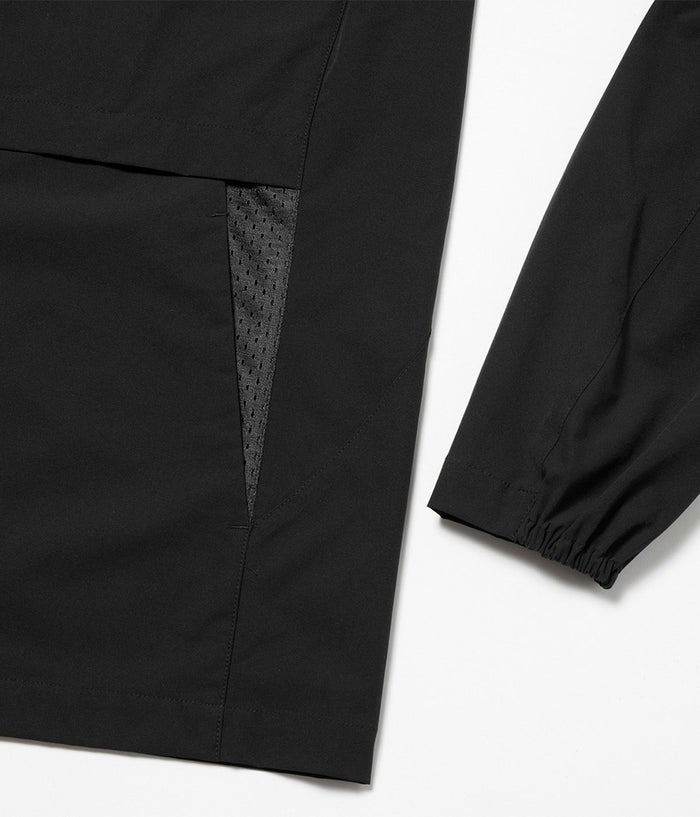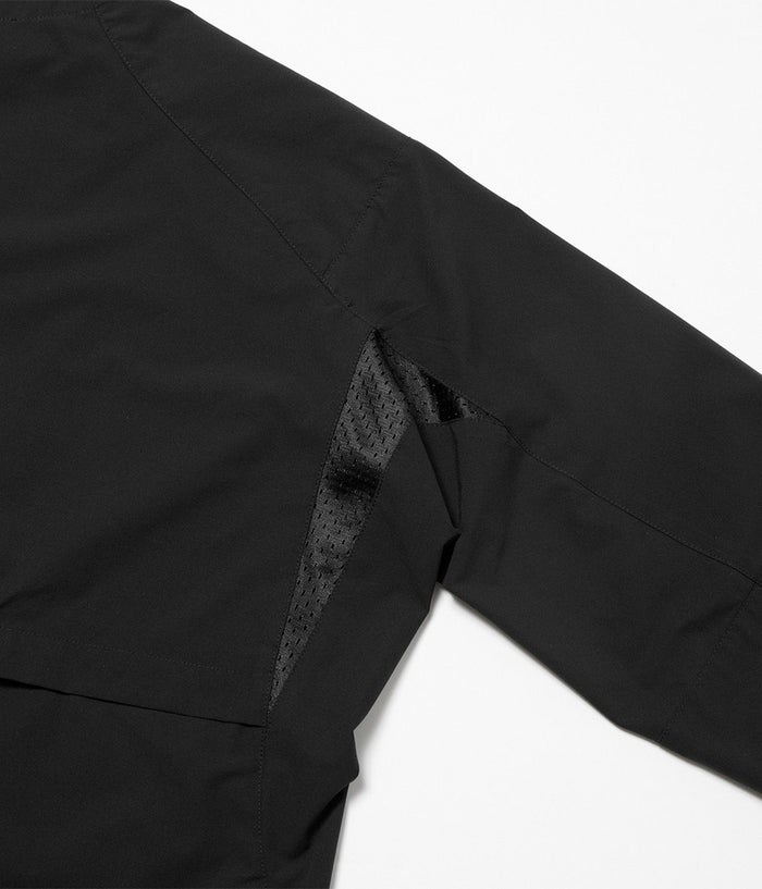 超軽量の全方向に伸縮するマルチストレッチ、シワになりにくく、撥水性も備えた機能素材を使用。レングスをレギュラー設定し、腰回りにもゆとりを持たせたバランスにした事で、各ボトムスとの相性も良い。ベンチレーション機能を完備している為、長い期間の着用が可能。