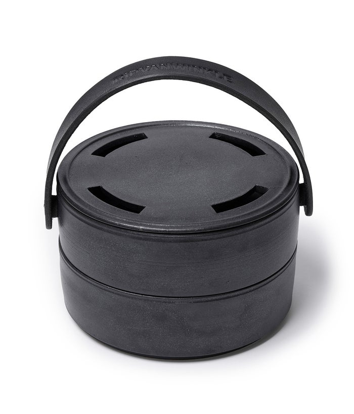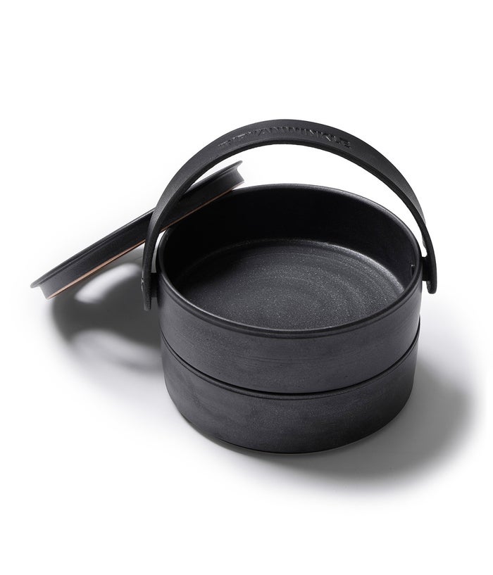 陶芸作家、小野俊氏に依頼をした『香り箱』。陶器×レザーというありそうでないアイテム。セパレートの2段構造になっており、下段にはストックを、上段には香り物を。レザーハンドルで持ち運びも可能。お香や蚊取り線香など利用は様々な唯一無二の作品。