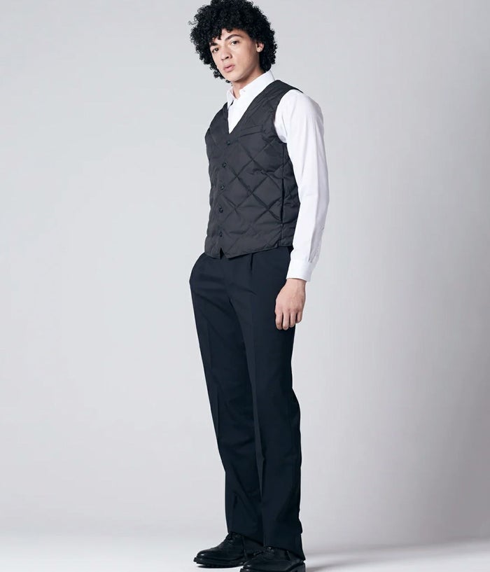 特にスーツのインナーベストとしてお使い頂ければと思います。いくつかダウンベストがある中コンサバな雰囲気でカジュアルすぎないモデルをセレクトさせて頂きました。