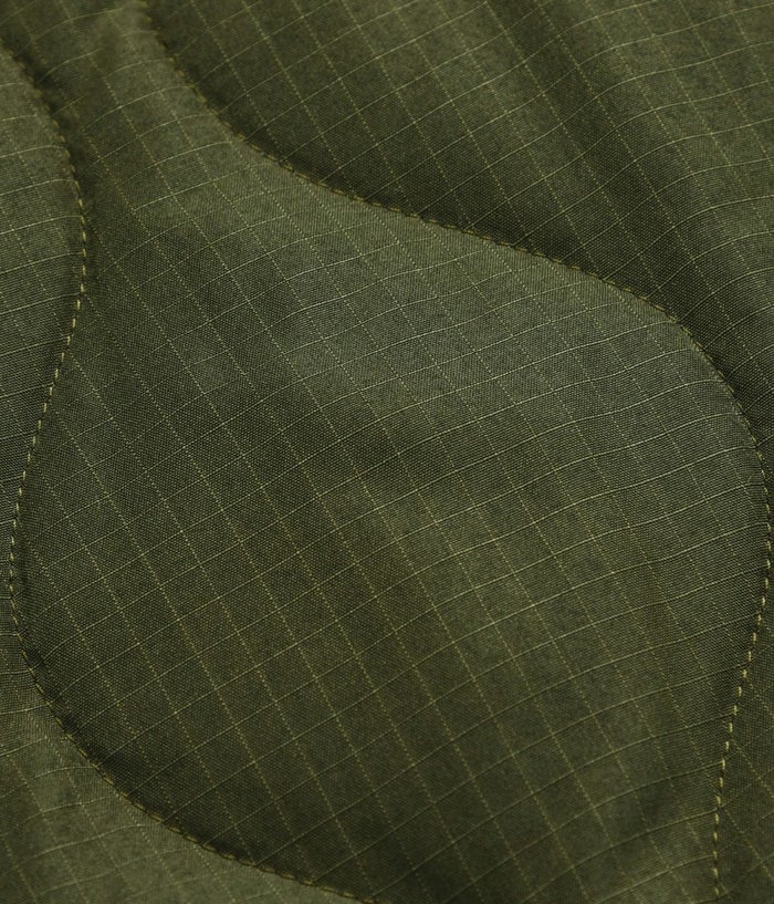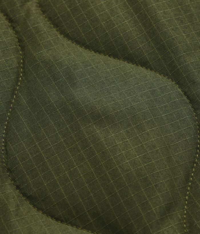 表側には、丈夫なリップストップ生地を使用し、保温性に優れた800FPのダウンを採用、ヘチマキルトのダウンステッチでミリタリー感を演出。
