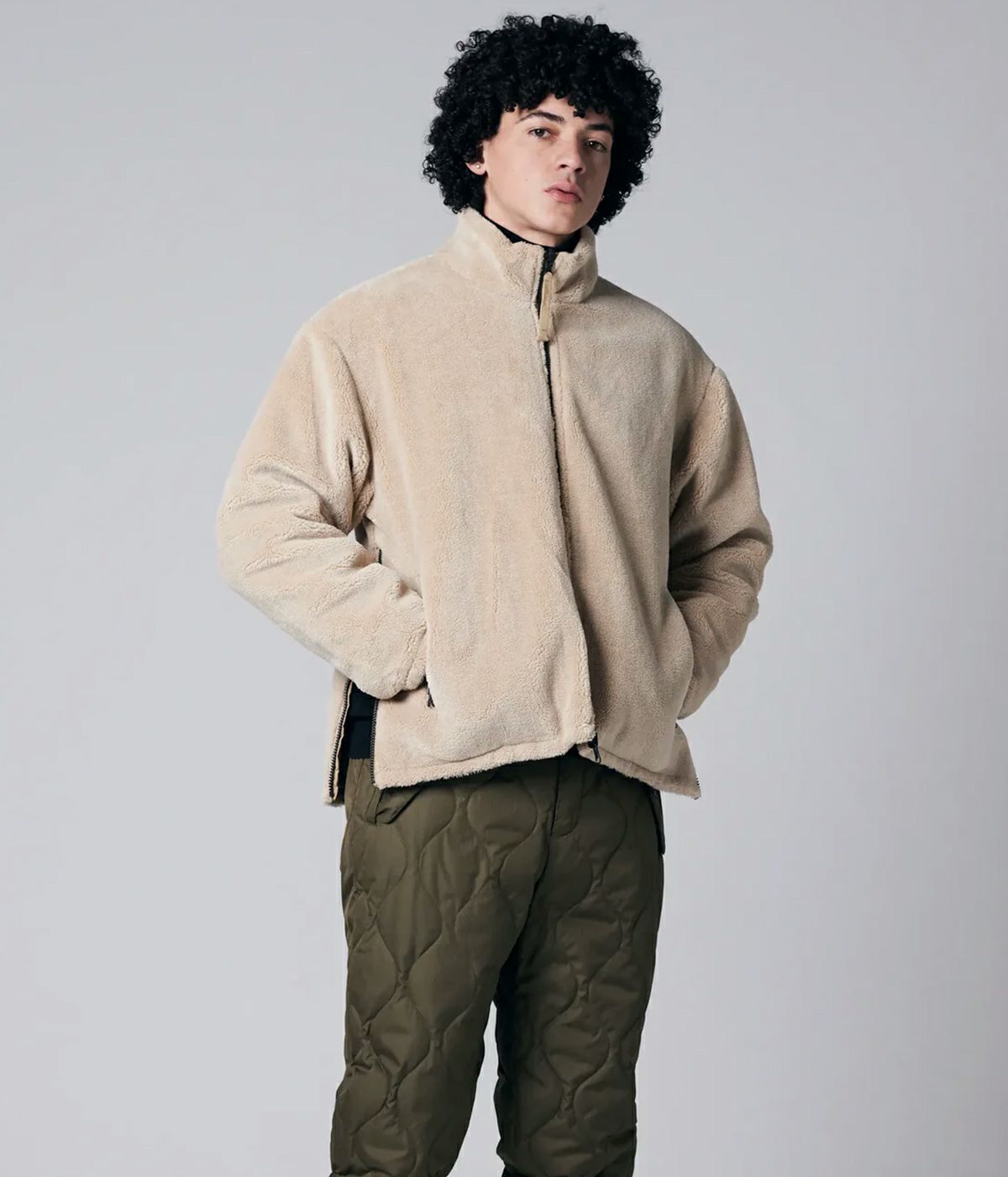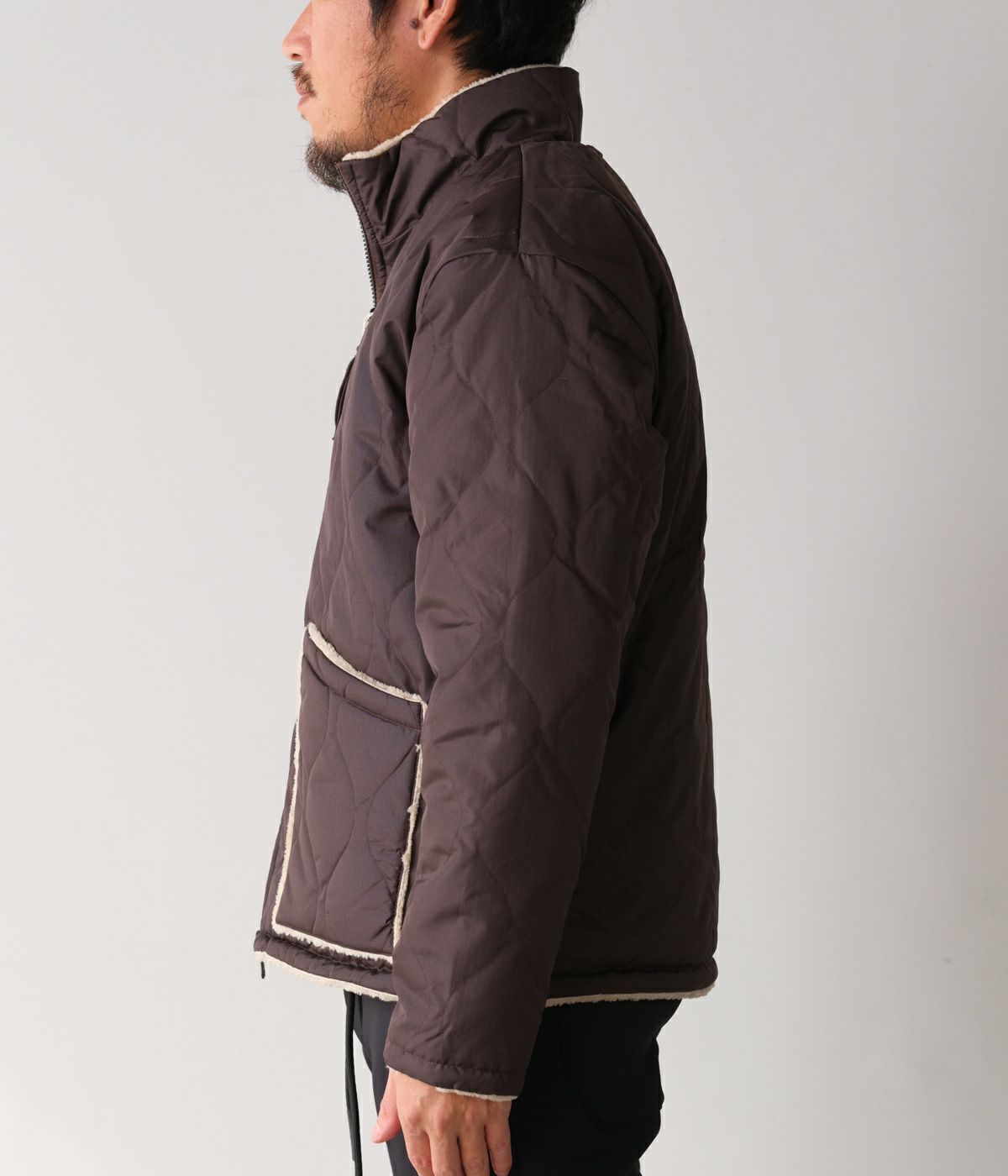裏側には、毛羽感のあるボアを採用し、防寒性も担保。