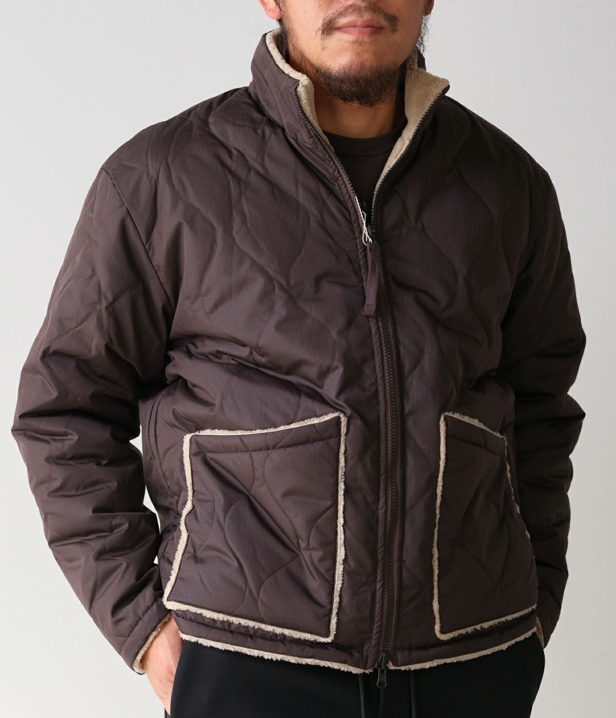 ボアを使用したリバーシブル商品という特性上、ボア側を内側に着用するとタイトになります。余裕を持って着用希望のお客様はワンサイズアップをおすすめします。