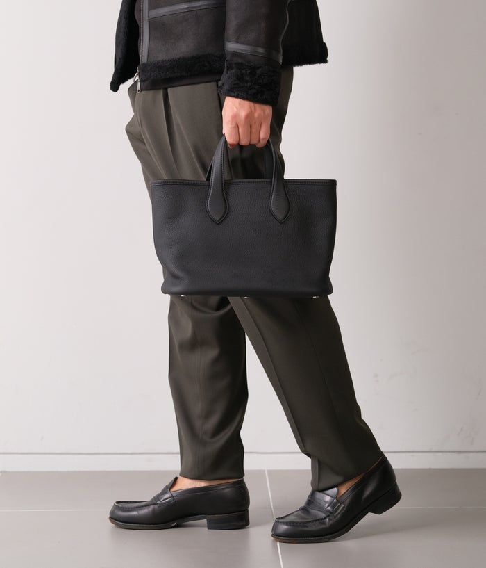 ハンドルも革芯を使用しているため、手にしたときのしっとり感と、バッグの大きさとのバランスも非常に計算された使い勝手の良いサイズで、使えば使うほど手に馴染んでいきます。 上品でシンプルなデザインは上質な大人のファッションにとてもマッチしてくれます。