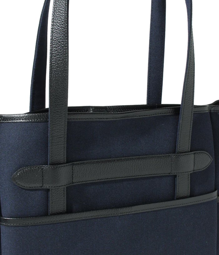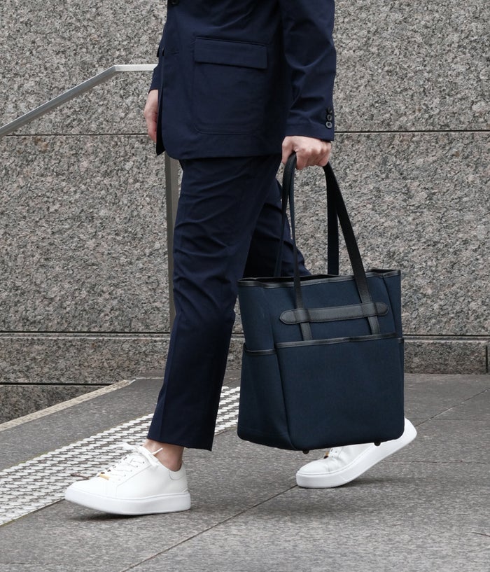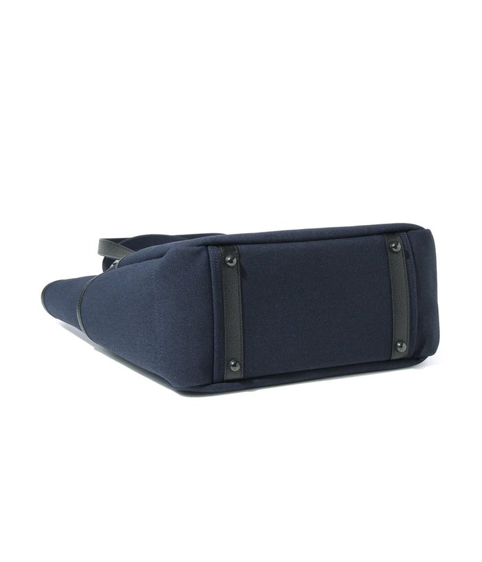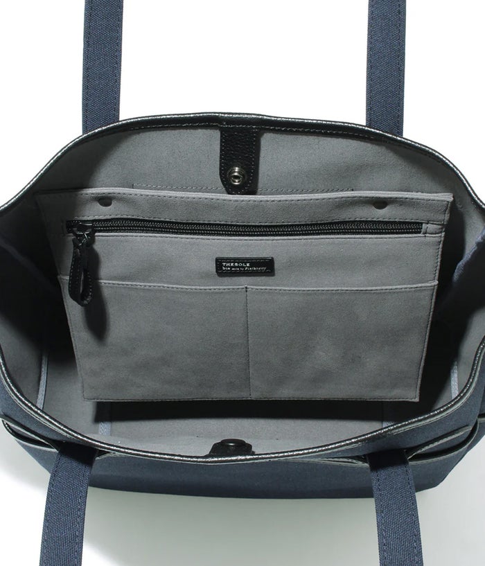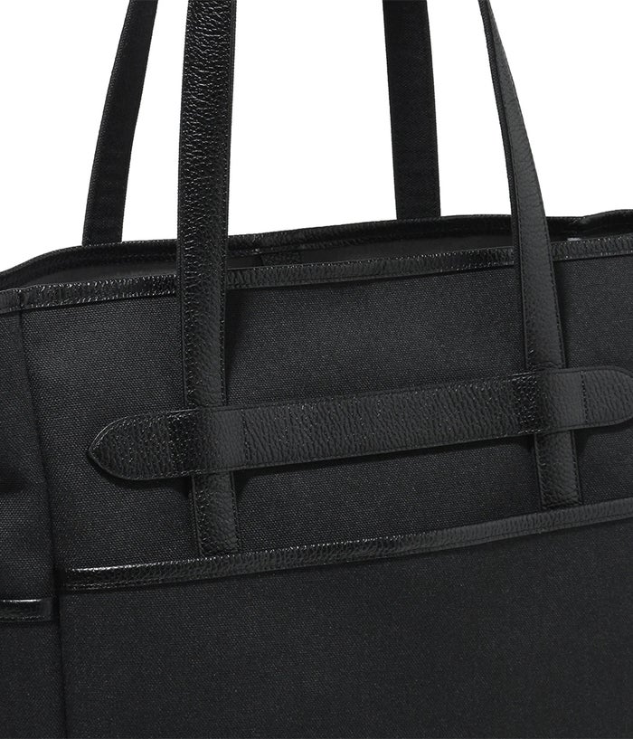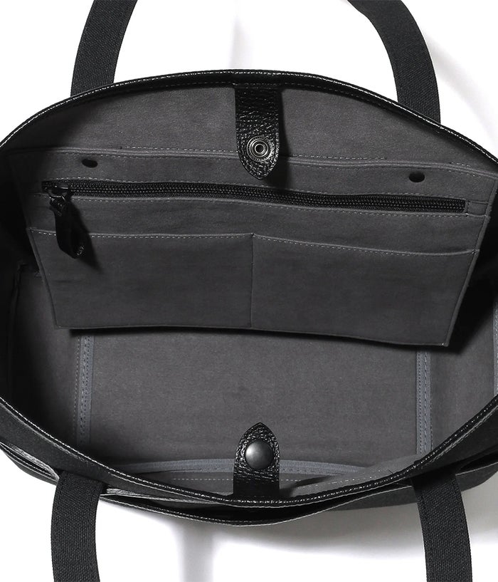 表面のキャンバスをハンドルの裏側に用いたり、ライニングには人工スエードを用いて芯材のようにボンディングし、限りなく副資材を省くことで、驚くほどの軽量さを実現しました。 素材表面の「撥水性」と「堅牢性」、そこに軽さが加わった現代的で実用性の高いバッグに仕上がっています。