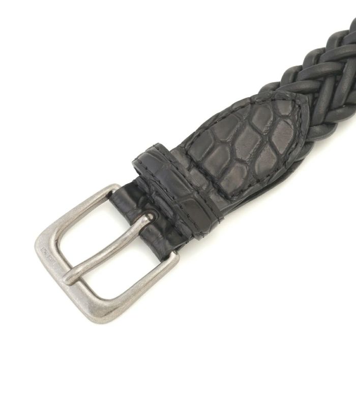 しっかりと編み込まれたレザーは、使いはじめは少し硬い印象がありますが、使い込んでいくうちにとても柔らかく馴染んでいきます。 世の中の多くのメッシュベルトは緩く編まれていたり、素材のクオリティが低かったりと、使っていくうちに伸びたり切れたりしていくことが多いですが、そんなメッシュベルトの弱点も改善しています。