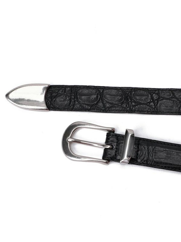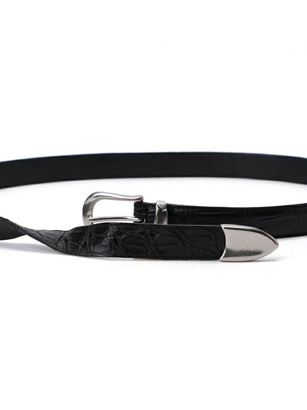 ベルトの剣先に付いているプンターレが自然に美しく垂れる様に金具の重さにまで拘って設計されたベルトです。 剣先の裏側にも贅沢にクロコダイルを配することで垂れた剣先がなびいた際も、どの角度からもクロコダイルの美しい腑が表れるようになっています。