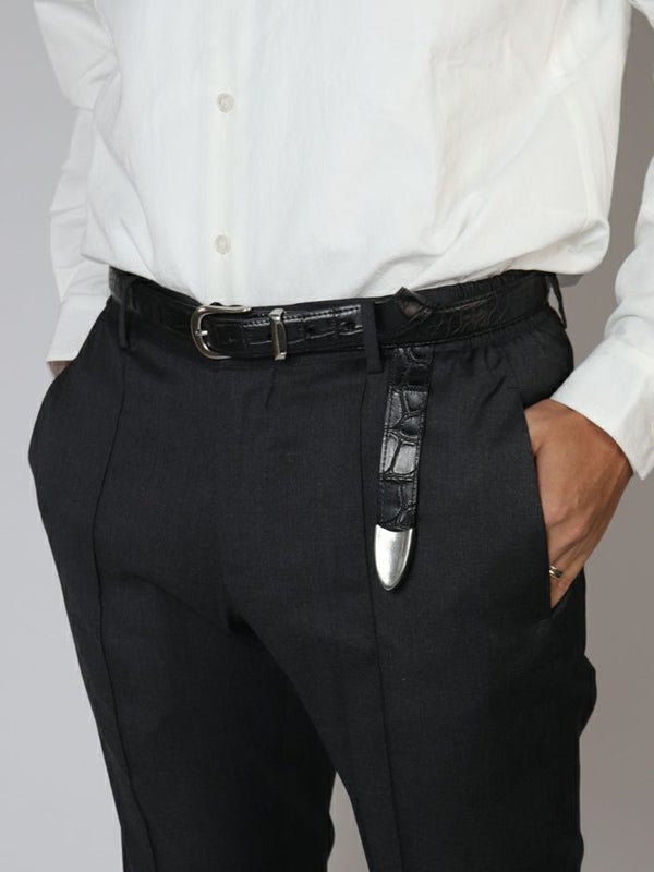 大人が付けるちょっとリッチなベルト枠として、確かなポジションを確立させたダブルリングベルト。クロコダイルを贅沢に使用しながらも嫌味のない上品な雰囲気だけど、高級感はしっかり感じられる。それが大人の男性に支持されている理由のひとつです。第二弾となるプンターレベルトは、スーツ・ジャケットのスタイルにも合わせられるように。と開発されたきれいめにもカジュアルにも合わせられるベルトです。