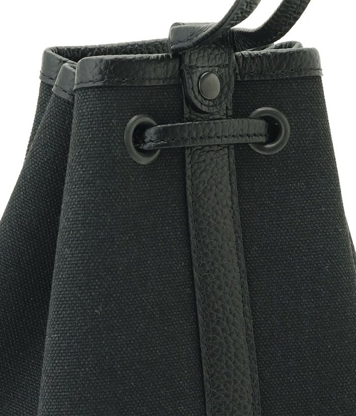 倉敷の老舗メーカーが生み出した旧式のシャトル織機で時間をかけて織り上げたキャンバス生地と型押しレザーが生み出す堅牢で洗練された構造をベースに、福島氏が理想とする“使えるミニバッグ”を追求して完成した、特別仕様の小型ボンサックです。