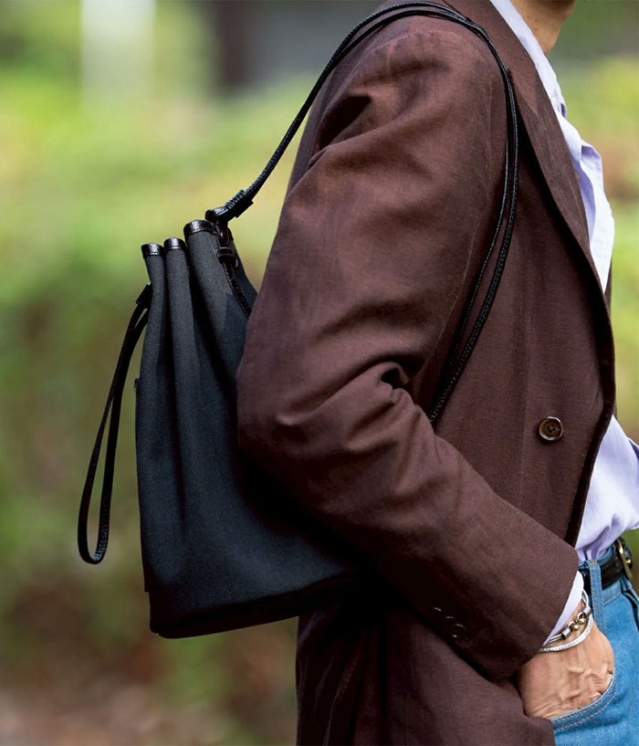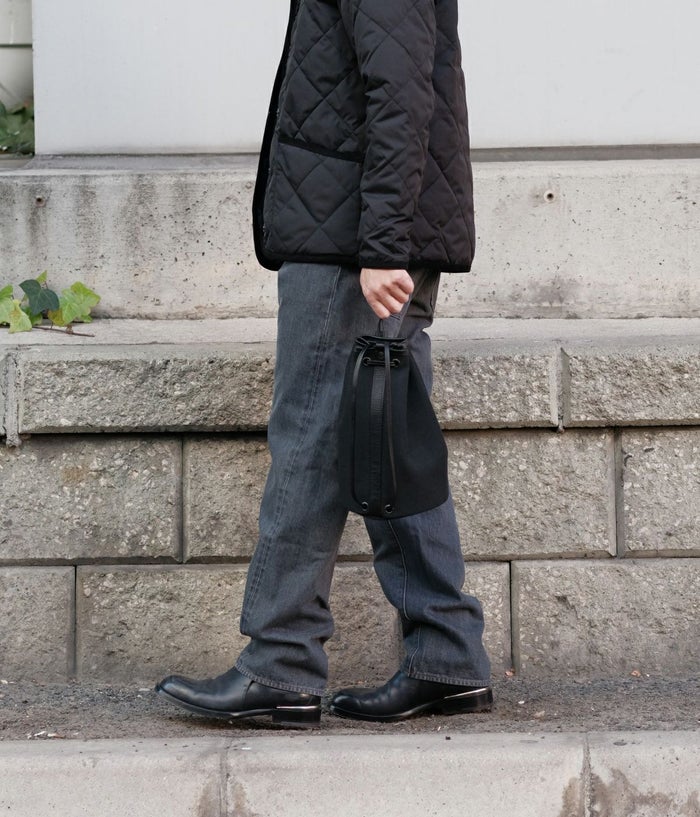 ボンサックとは、フランス語で「縦長の筒状のバッグ」を意味し、巾着のように口元を絞って閉じる構造が特徴。このアイテムはその伝統的スタイルを踏襲しつつ、現代的な解釈と用途をプラスしています。