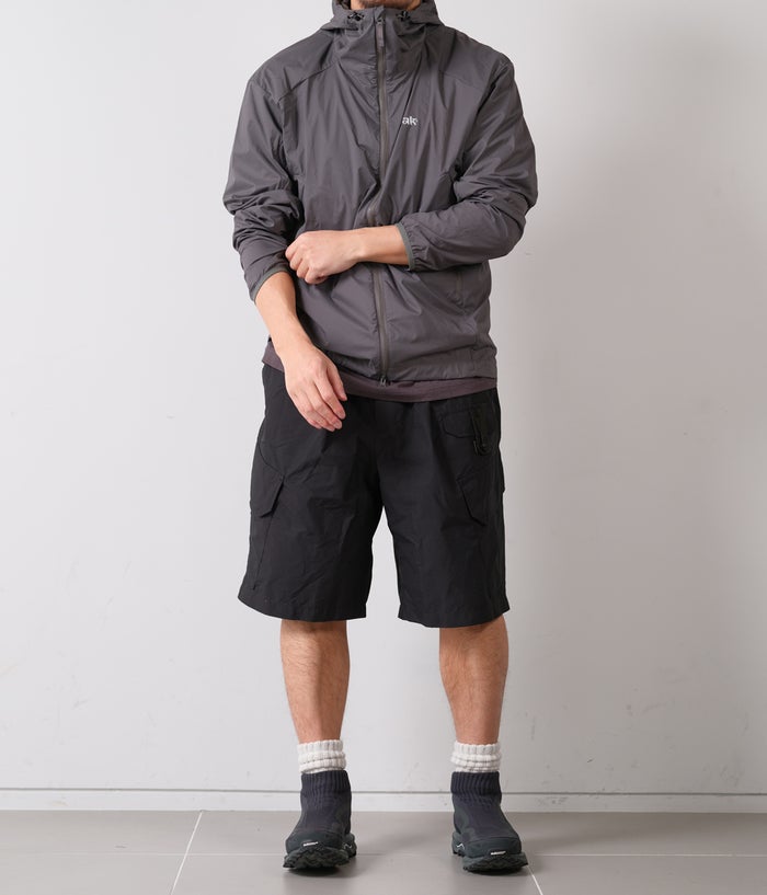 ポケットに収納できるパッカブル仕様となっており、収納時は片手でお触るボリューム。ゆったりとしたシルエットとフロントポケットを左右に配置することで、幅広いシーンで活躍します。
